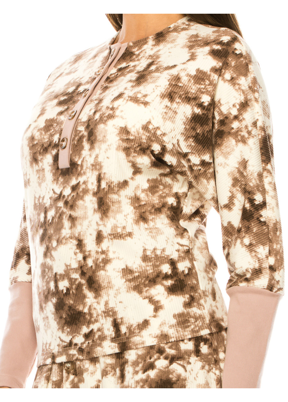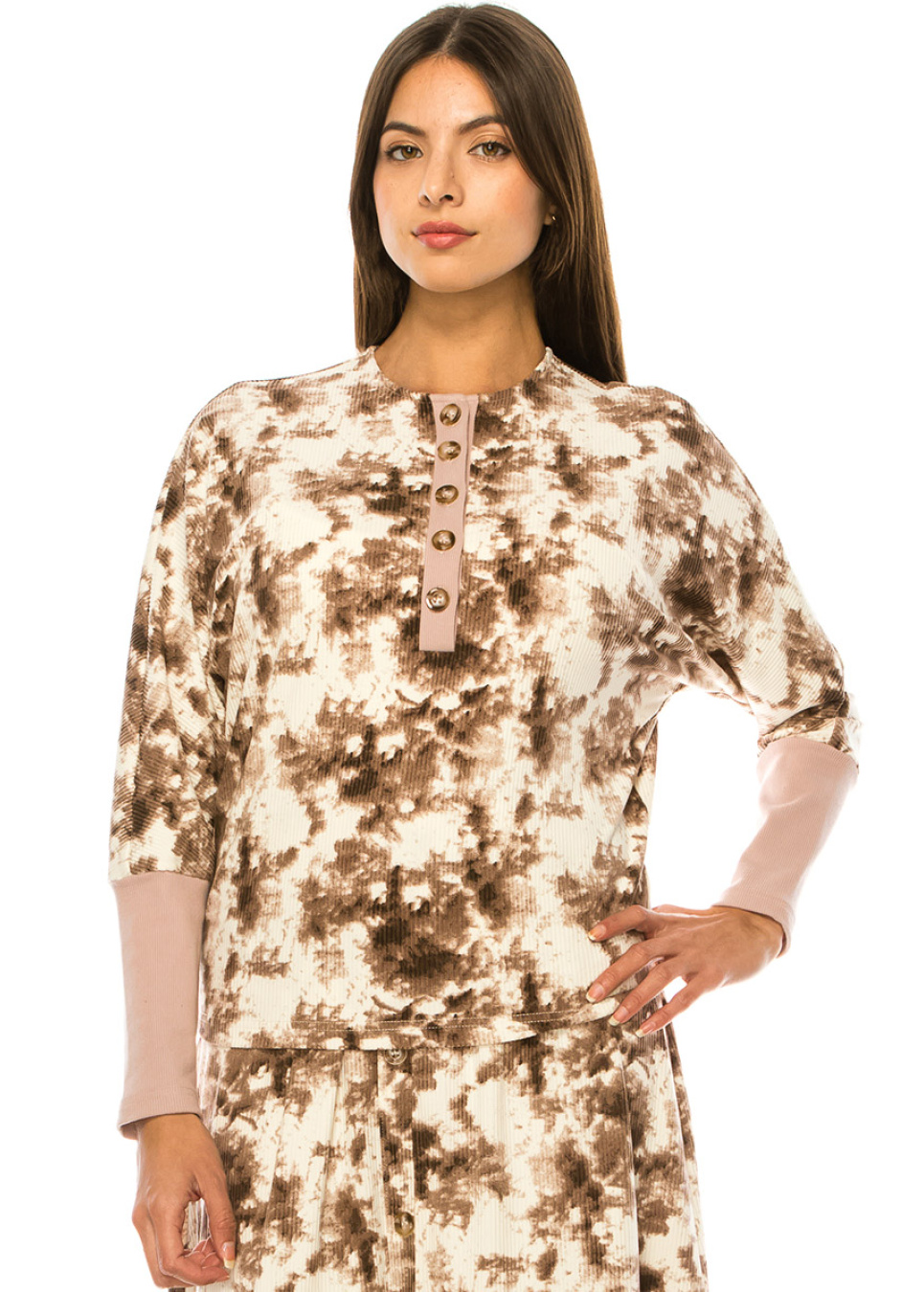 Embrace your romantic side with this long sleeve t-shirt. The printed design on the pink shirt is a sweet and whimsical piece, while the quarter button and loose fit make it practical and comfortable. Perfect for a dreamy and feminine look.