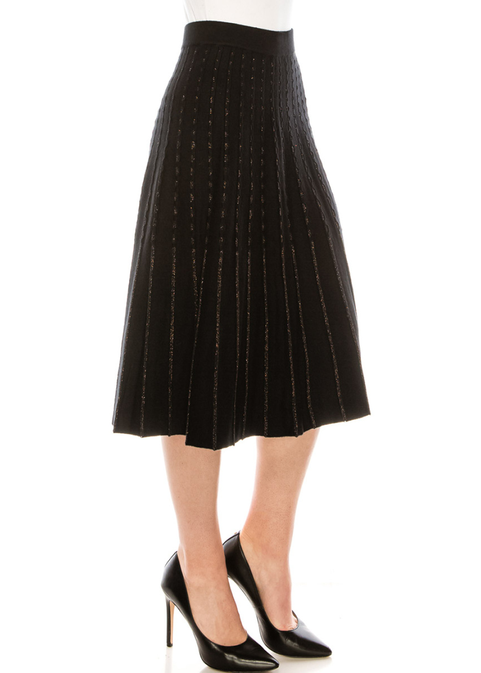 Do you want a basic and stylish skirt? The YAL skirt's midi length and gold accents make it suitable for wearing to work, on a night out, or on a simple walk. It's a perfect autumn piece because of the warm, high-quality fabric and lovely pleats.