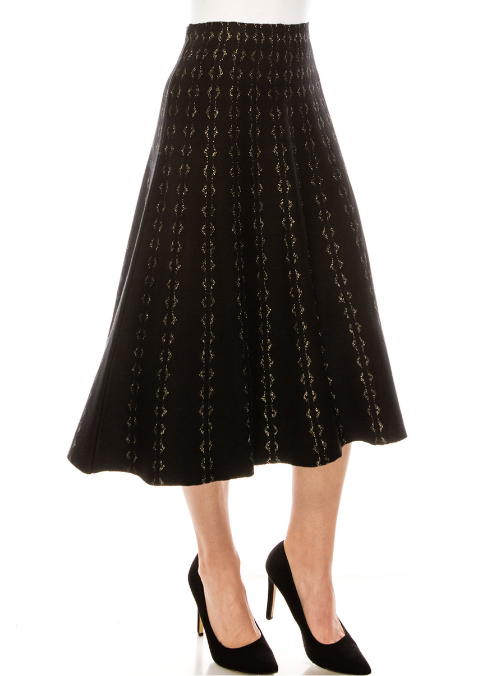 Want to be modest but are sick of the all-black looks? Consider wearing this stylish skirt with a glitzy golden design. Due to the A-line cut and high-quality fabric, it doesn't limit your motion and keeps you warm.