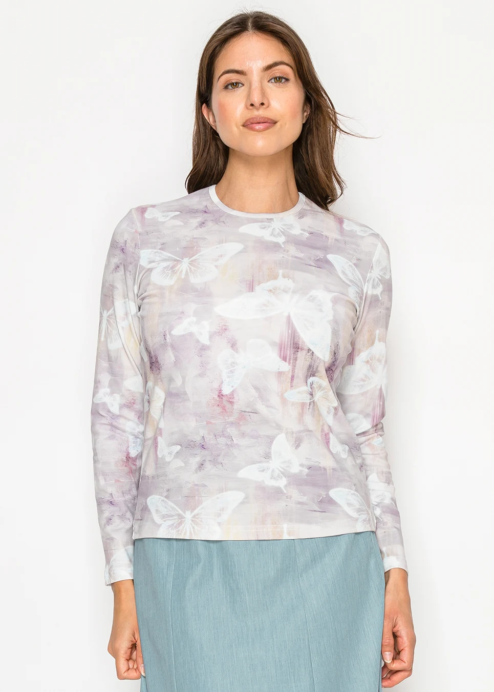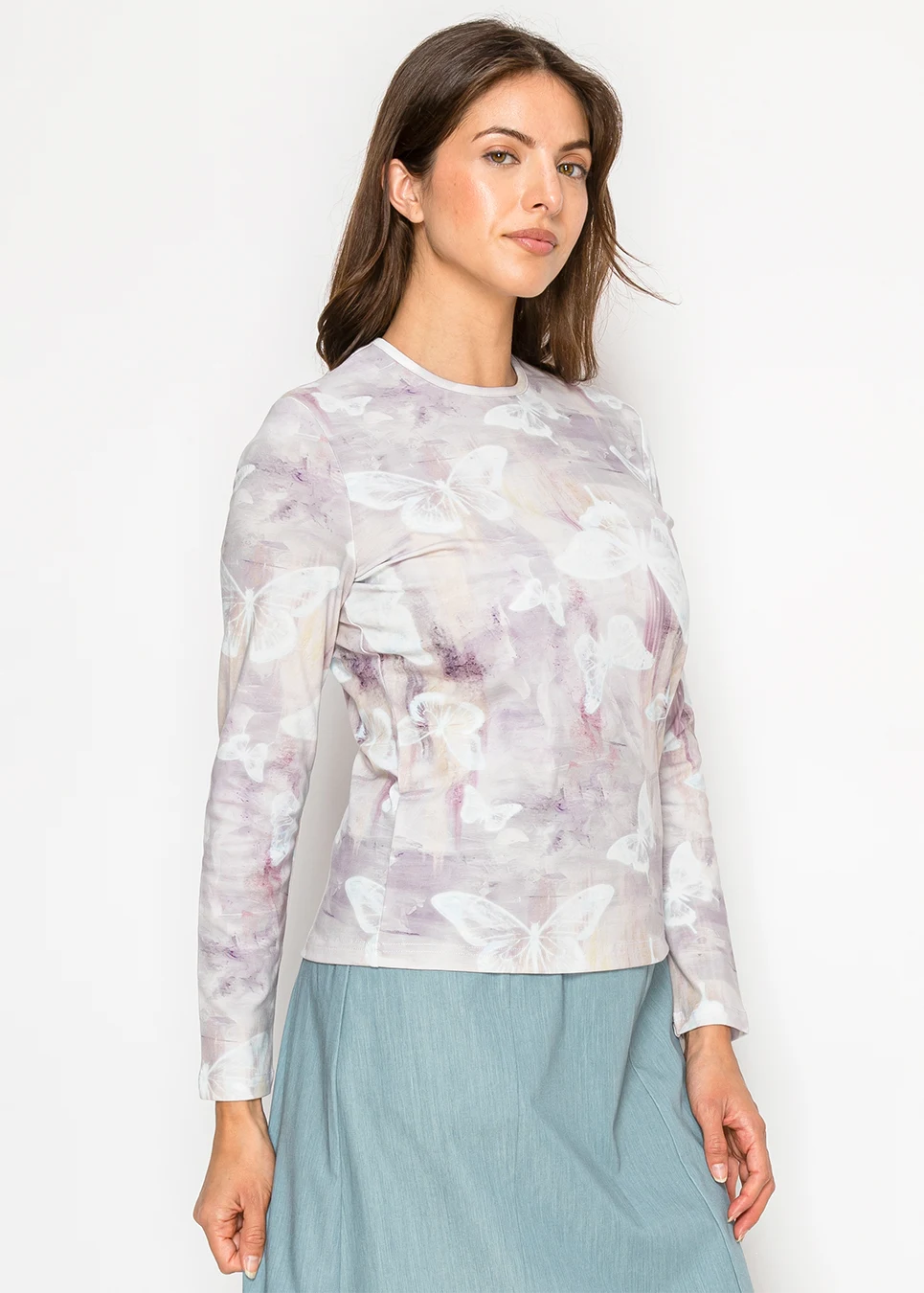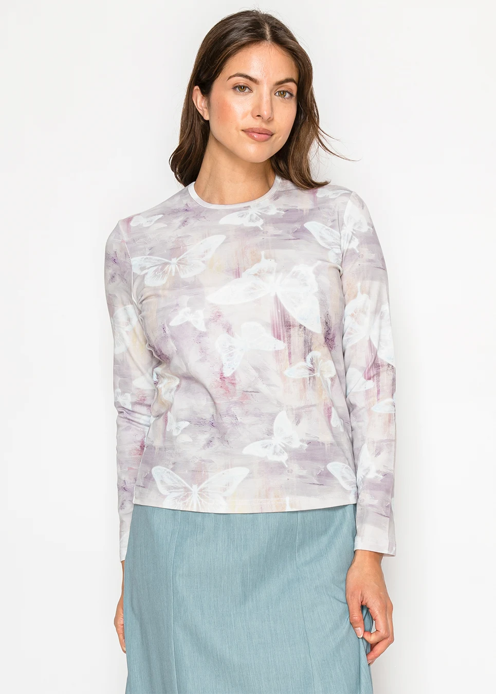 There’s something very easy about this one — soft colors, a gentle print, and a fit that doesn’t ask for adjusting. It’s the kind of tee that quietly works with whatever you pair it with.