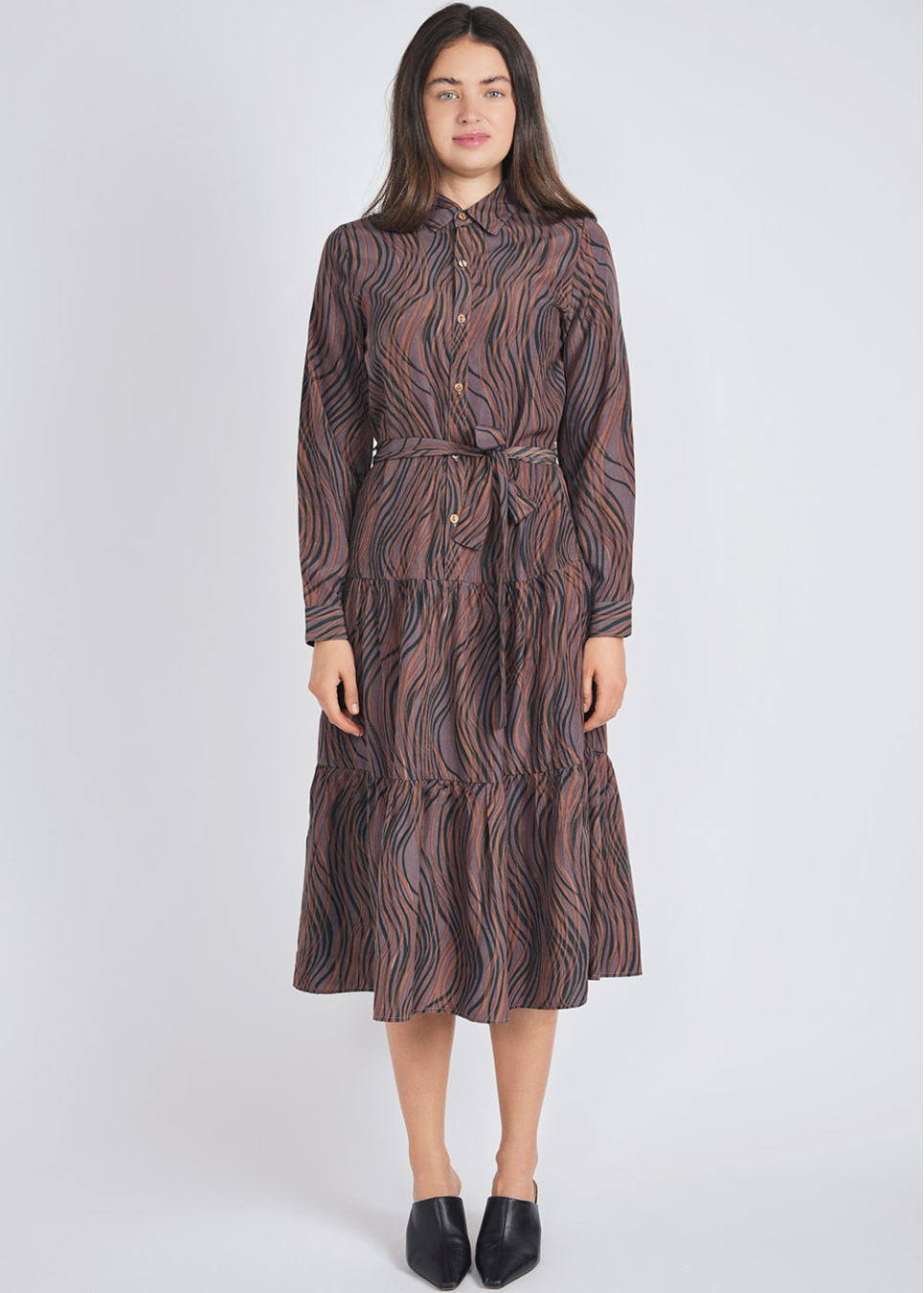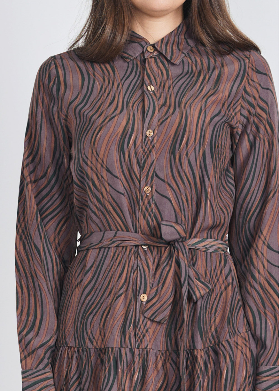 Amber Glow Belted Shirt Dress