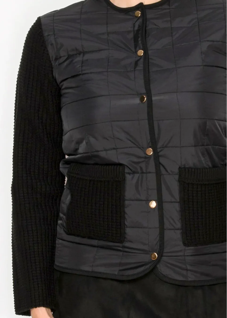 Quilted Knit Sleeve Jacket – Black