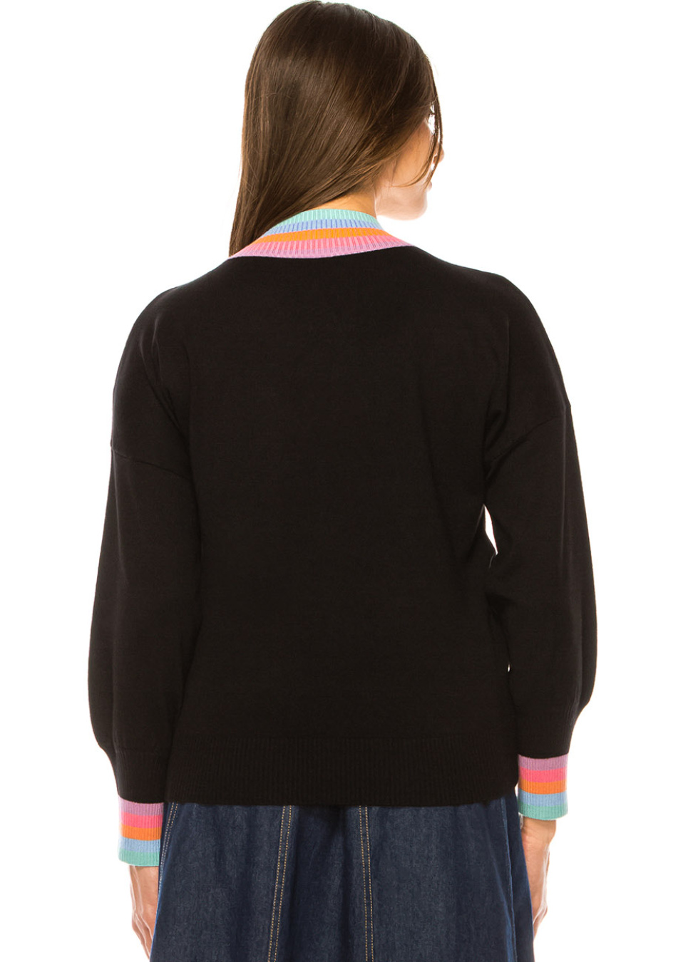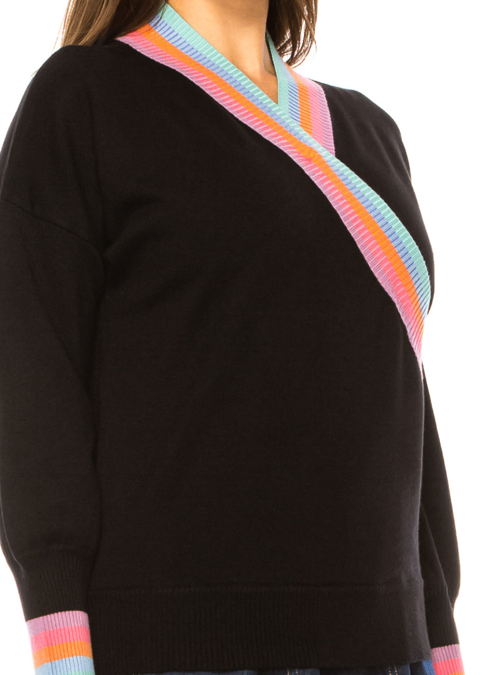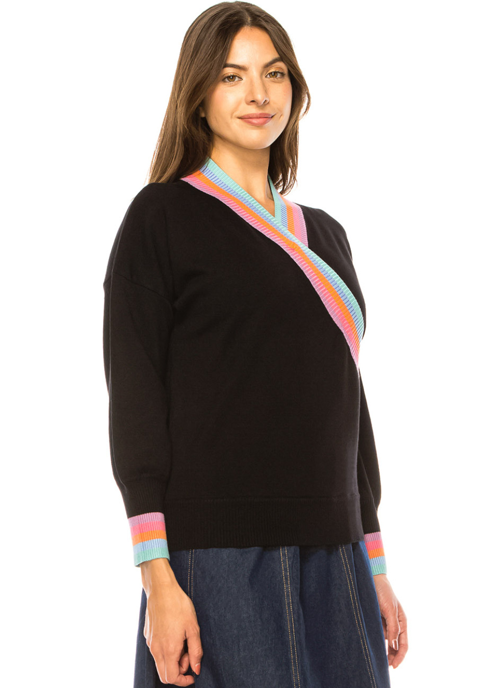 Rainbow Accent V-Neck Black Sweater