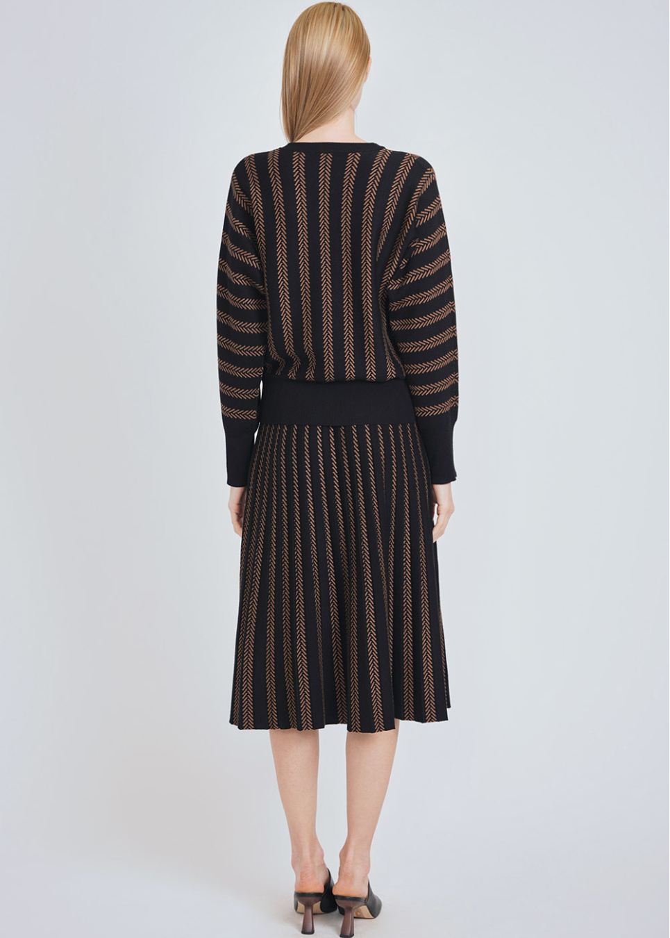 Camel & Black Striped Ribbed Sweater