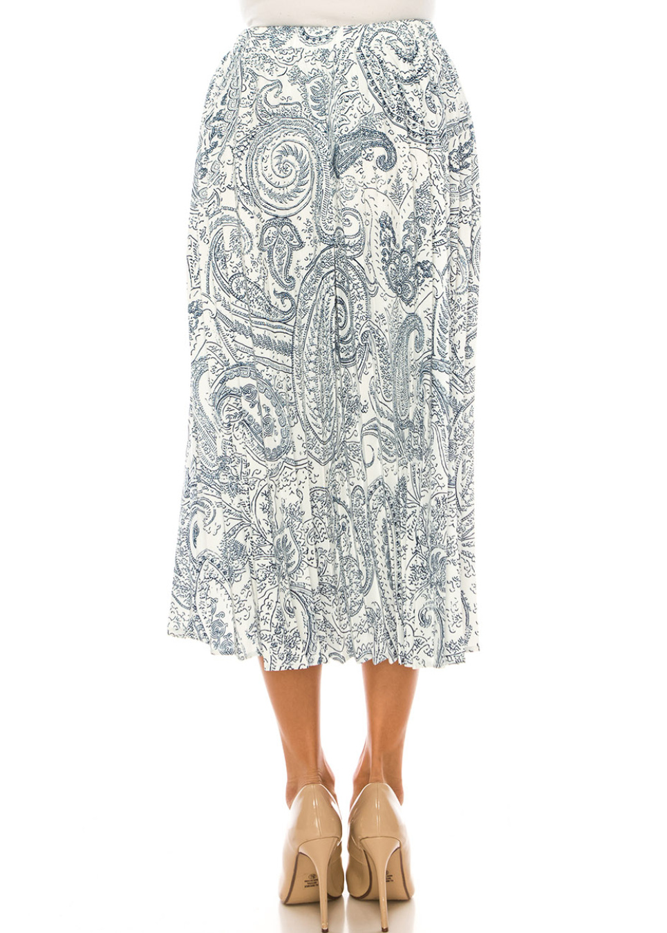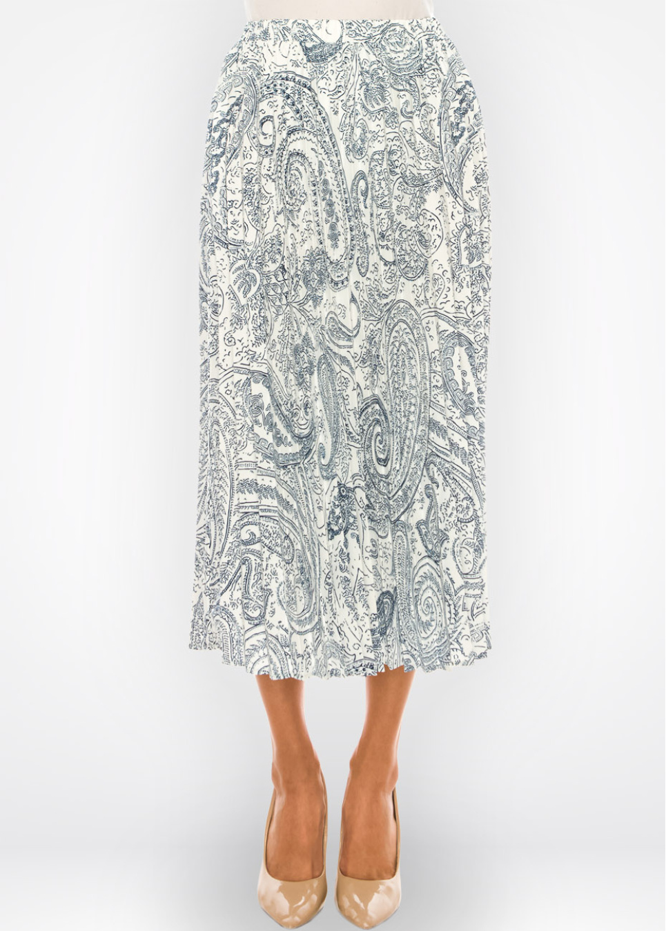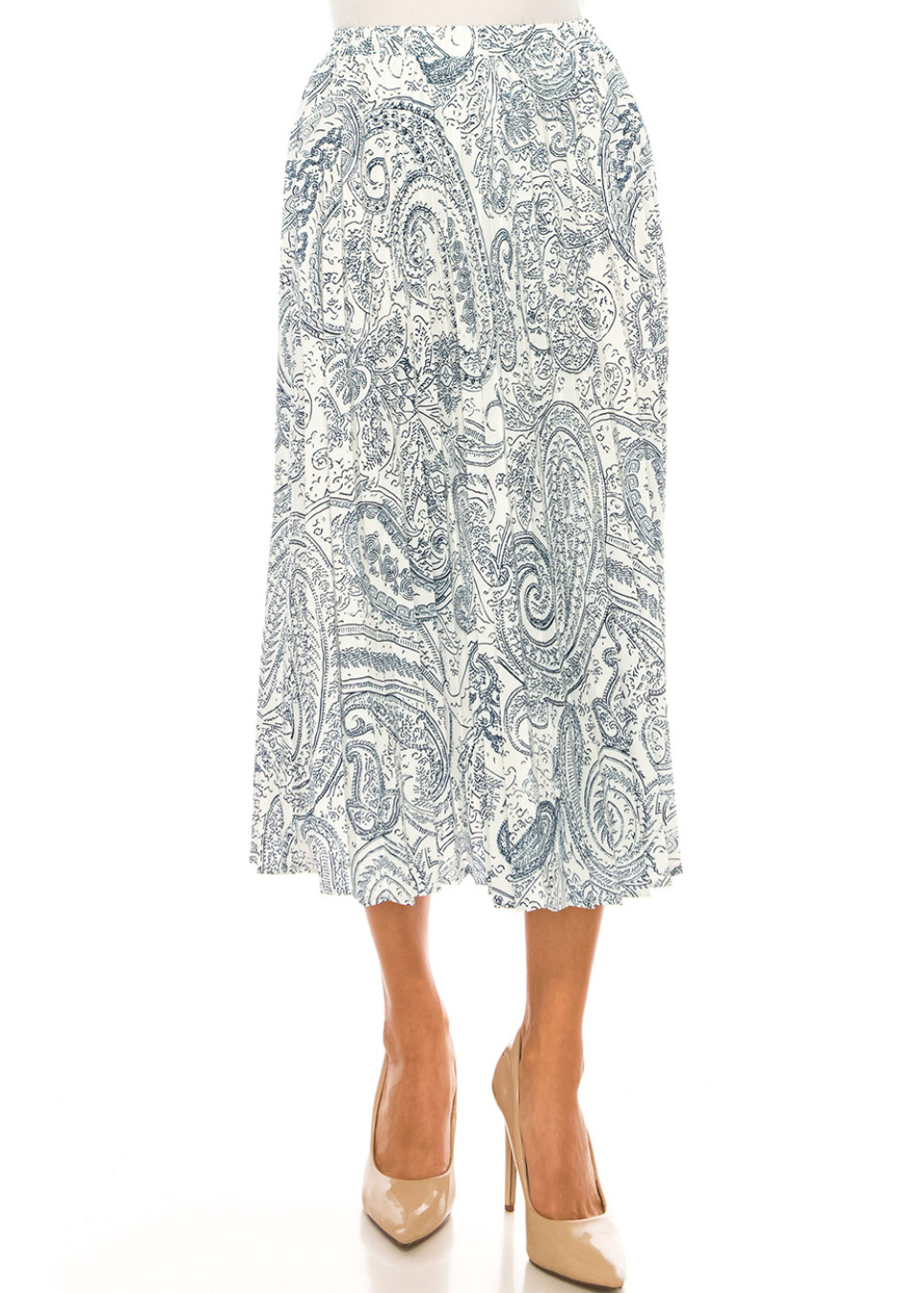 Blue Paisley Pleated Midi Skirt