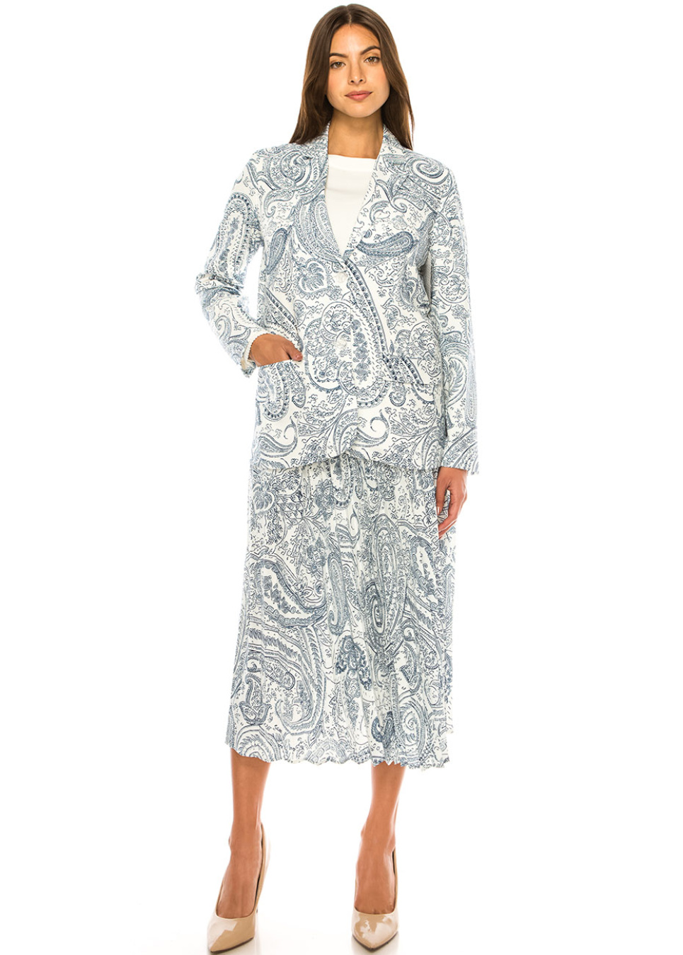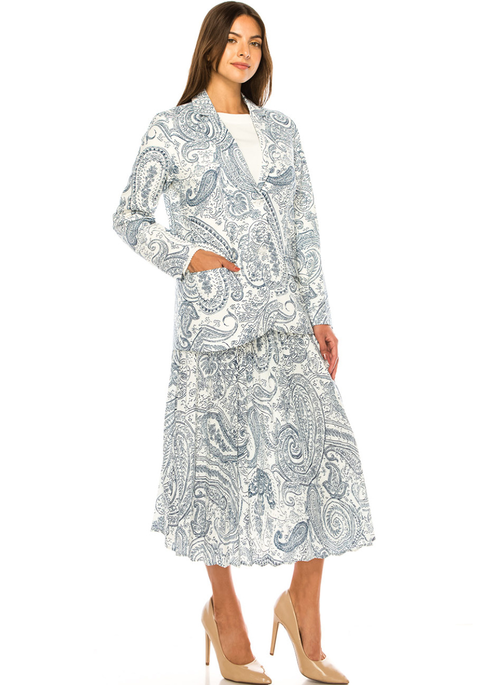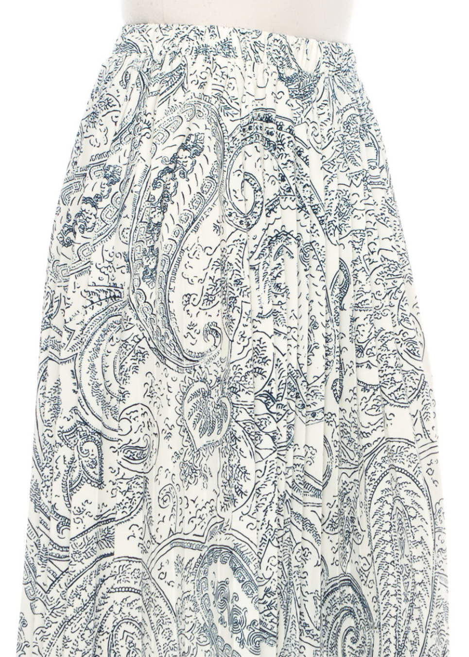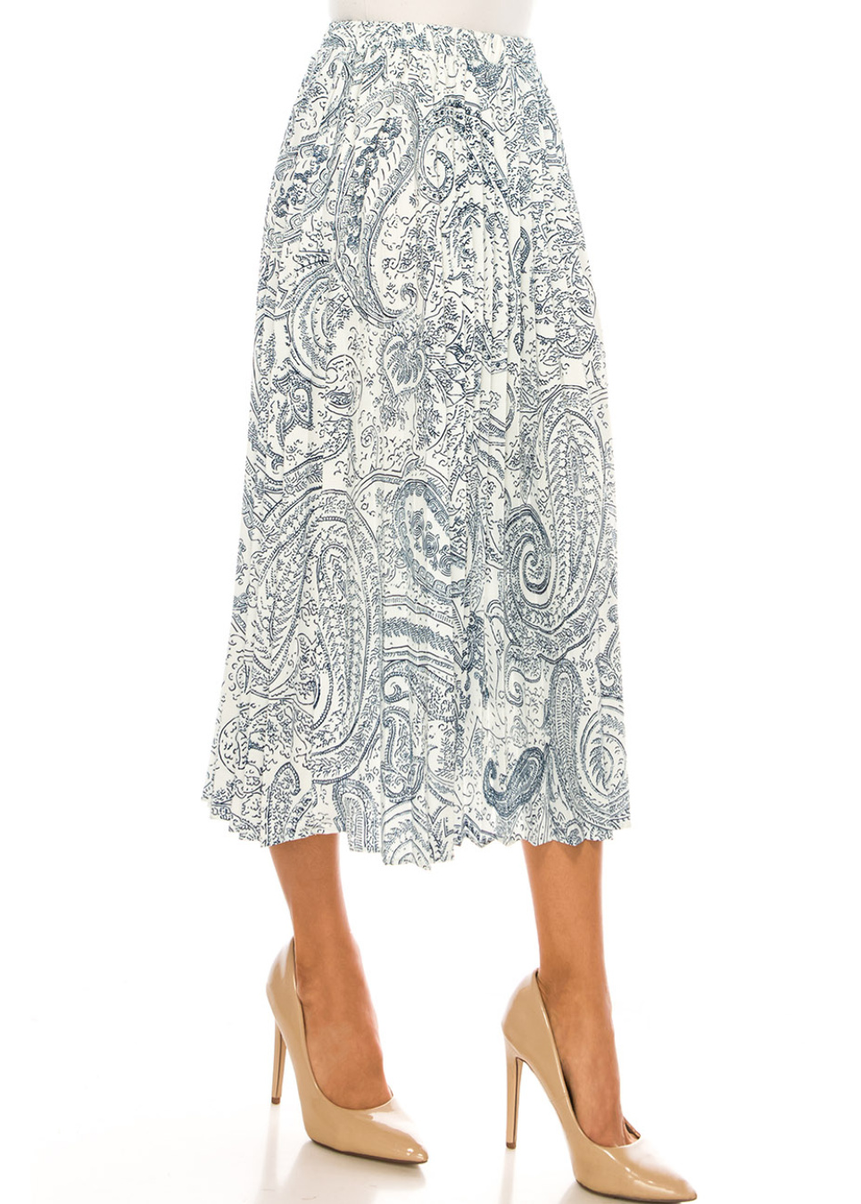 Blue Paisley Pleated Midi Skirt