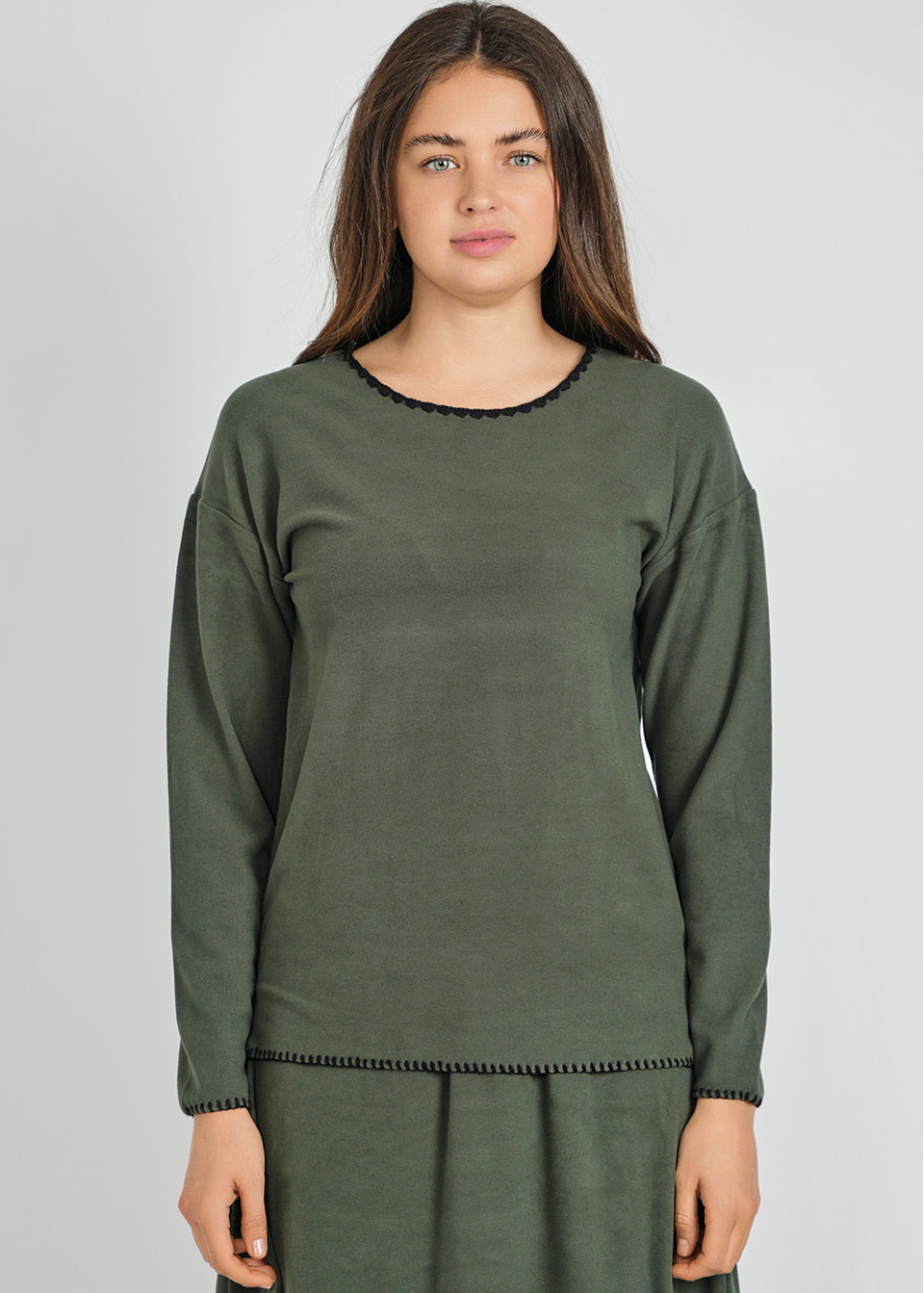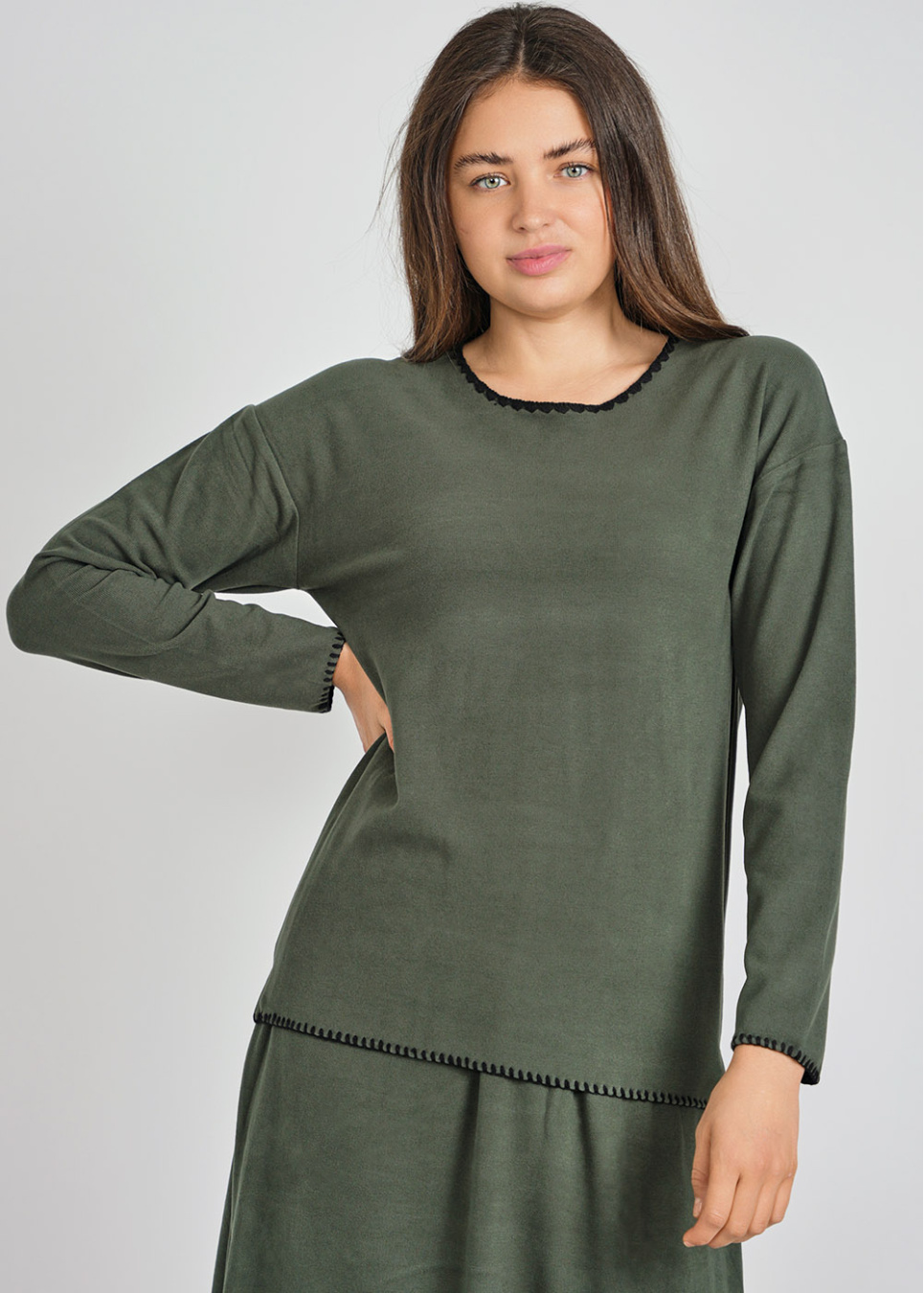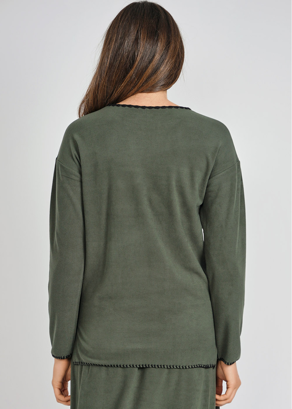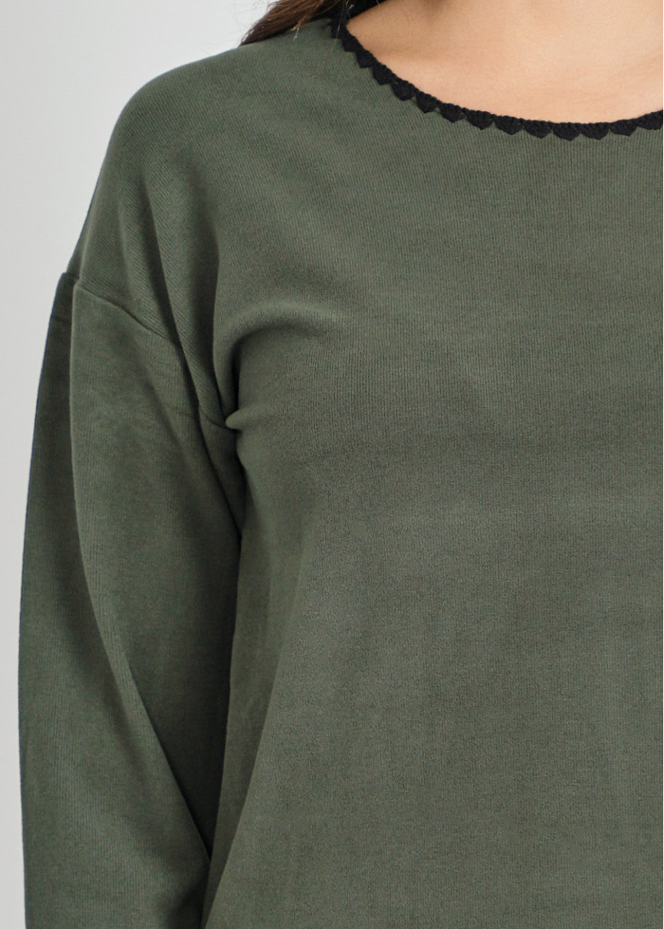 Long Sleeve Black Pullover with Denim Trim