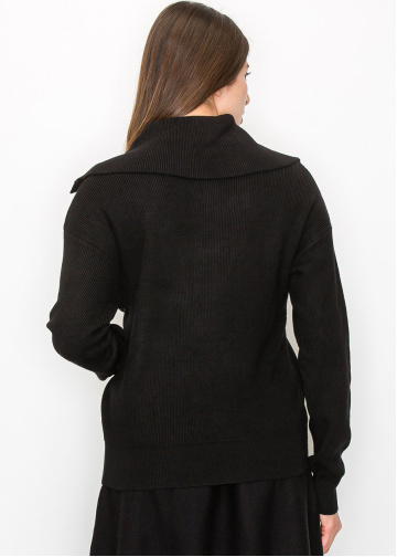 This ribbed knit sweater offers both comfort and style, highlighted by a statement collar that makes it stand out from the crowd. The soft fabric and classic button front make it ideal for layering, ensuring you stay cozy while looking polished.