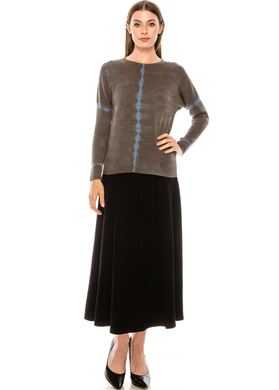 This crewneck sweater is the perfect complement to any of your ensembles throughout the cooler months. It's made in a roomy, relaxed cut and has ribbed knit sleeves for a sense of coziness. Unusual blue print adds a fashionable accent to the classical design.