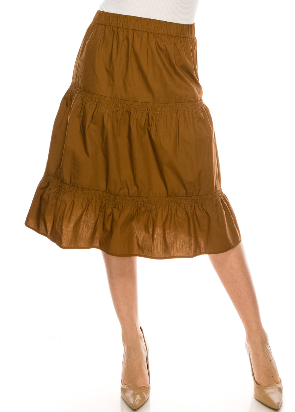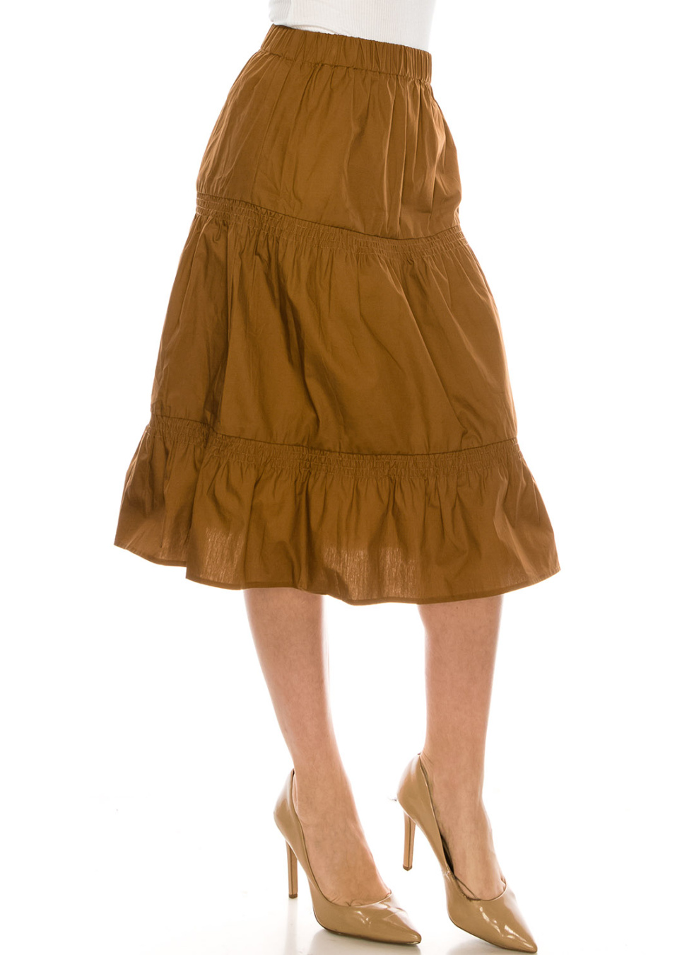 Ruched Midi Skirt Camel