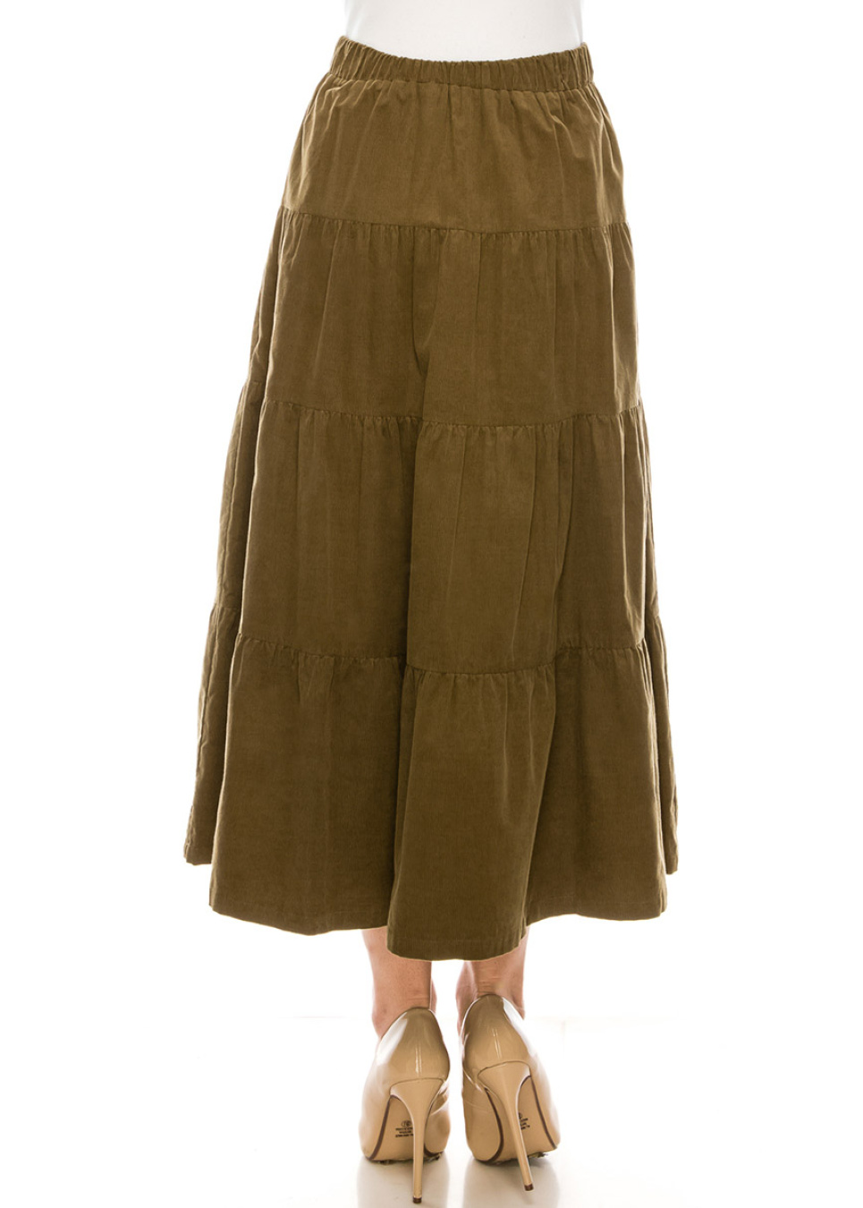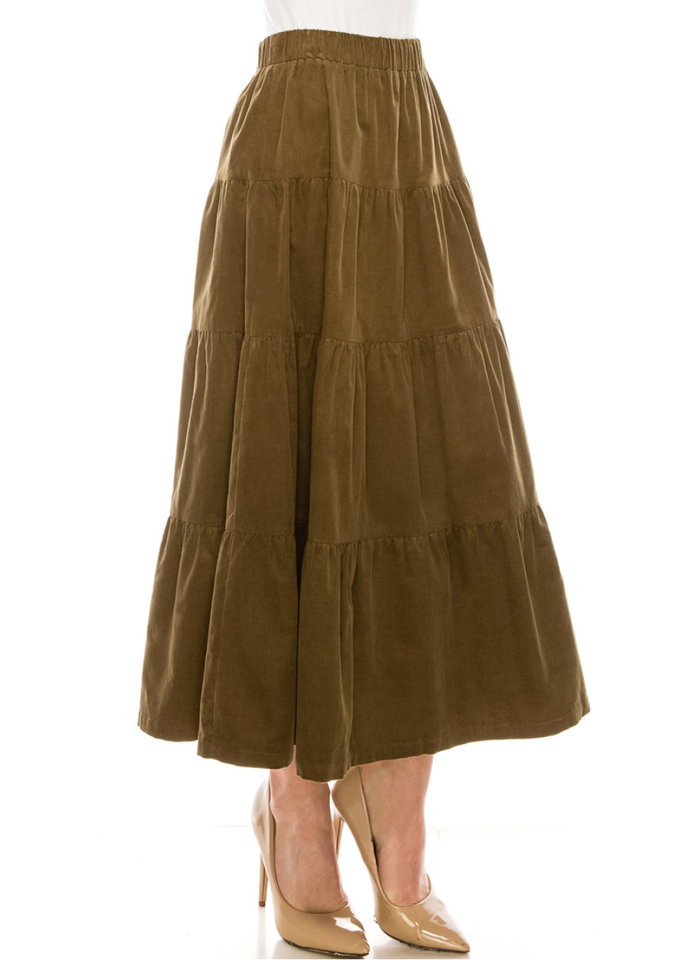 Ruffle Tiered Maxi Skirt in Olive Corduroy