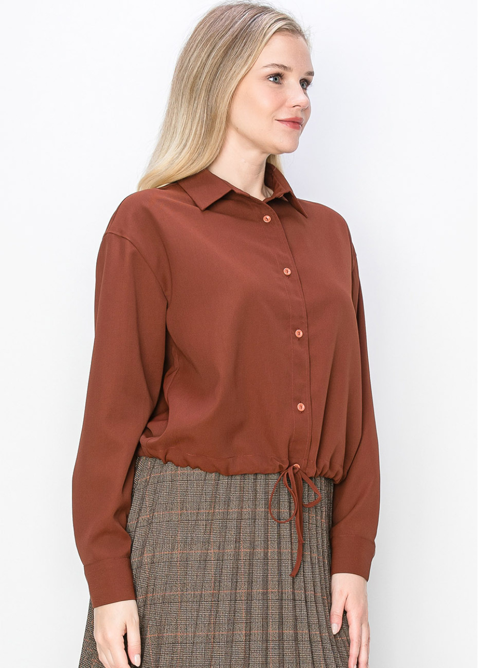 Rust-Colored Shirt with Drawstring