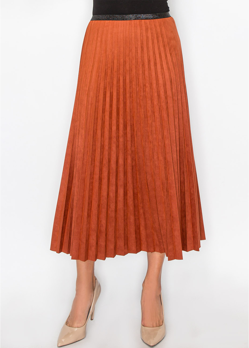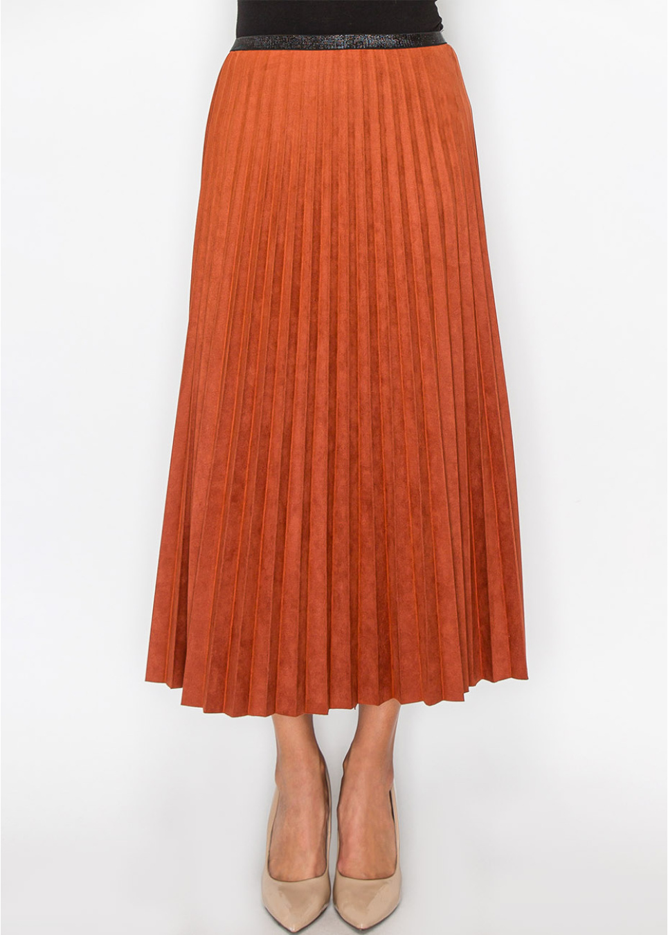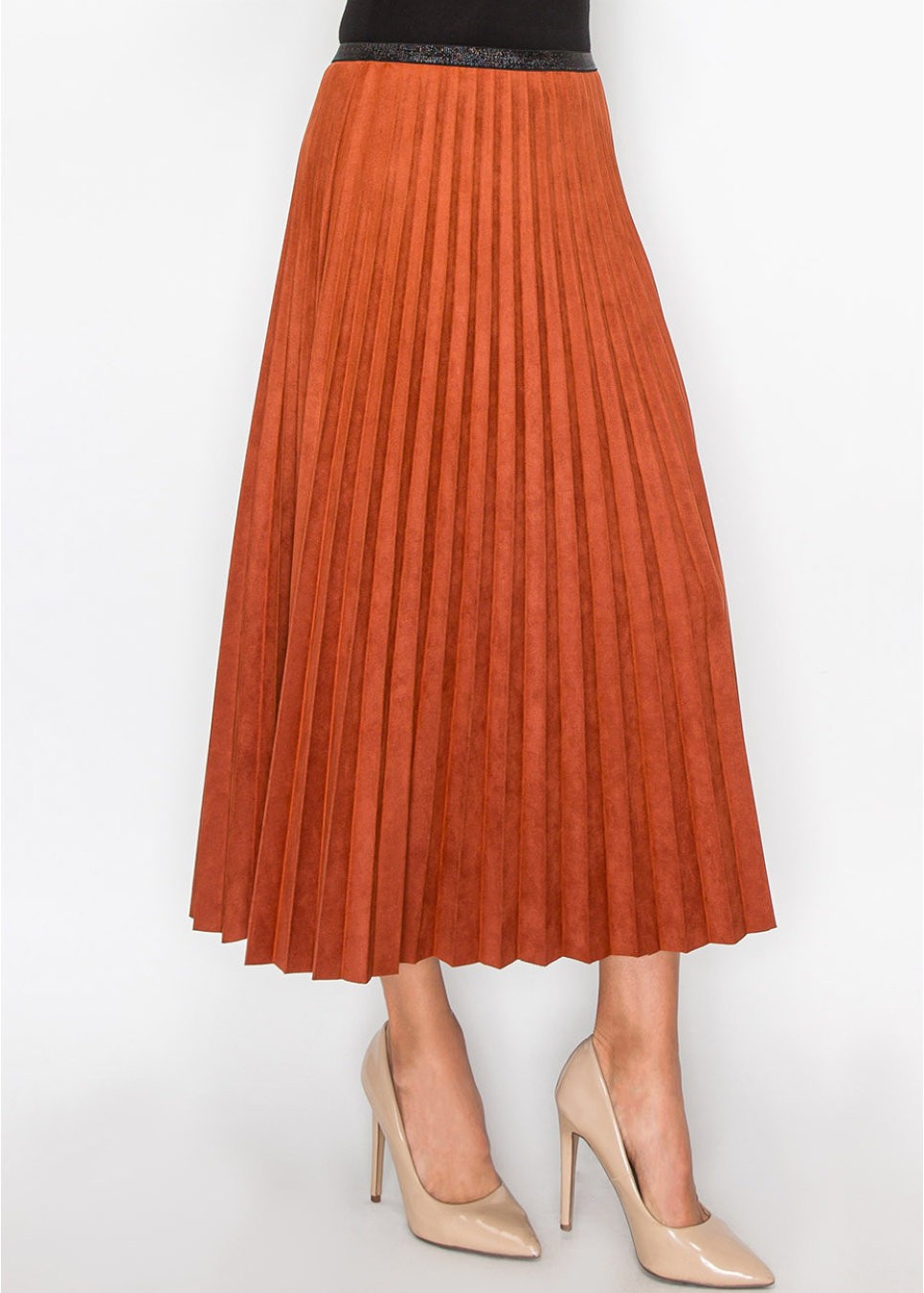 Rust Suede Midi Skirt with Pleats