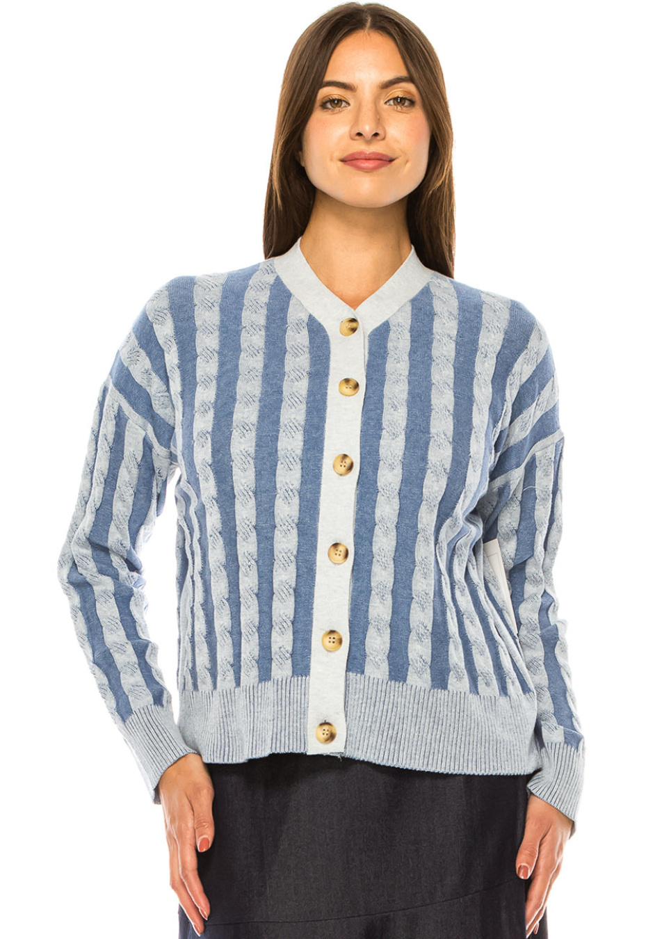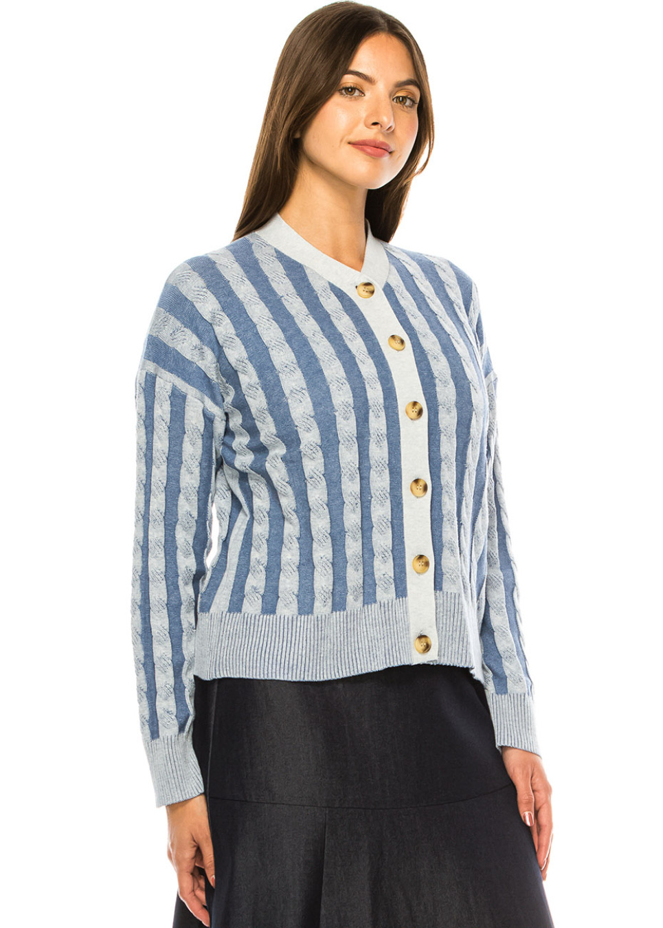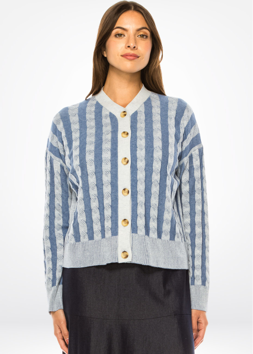 Sapphire Striped Cable Cardigan