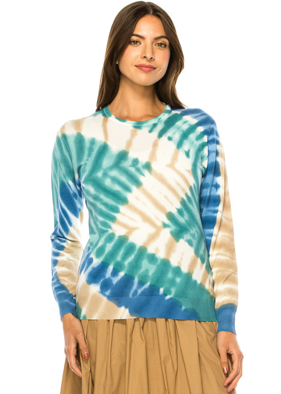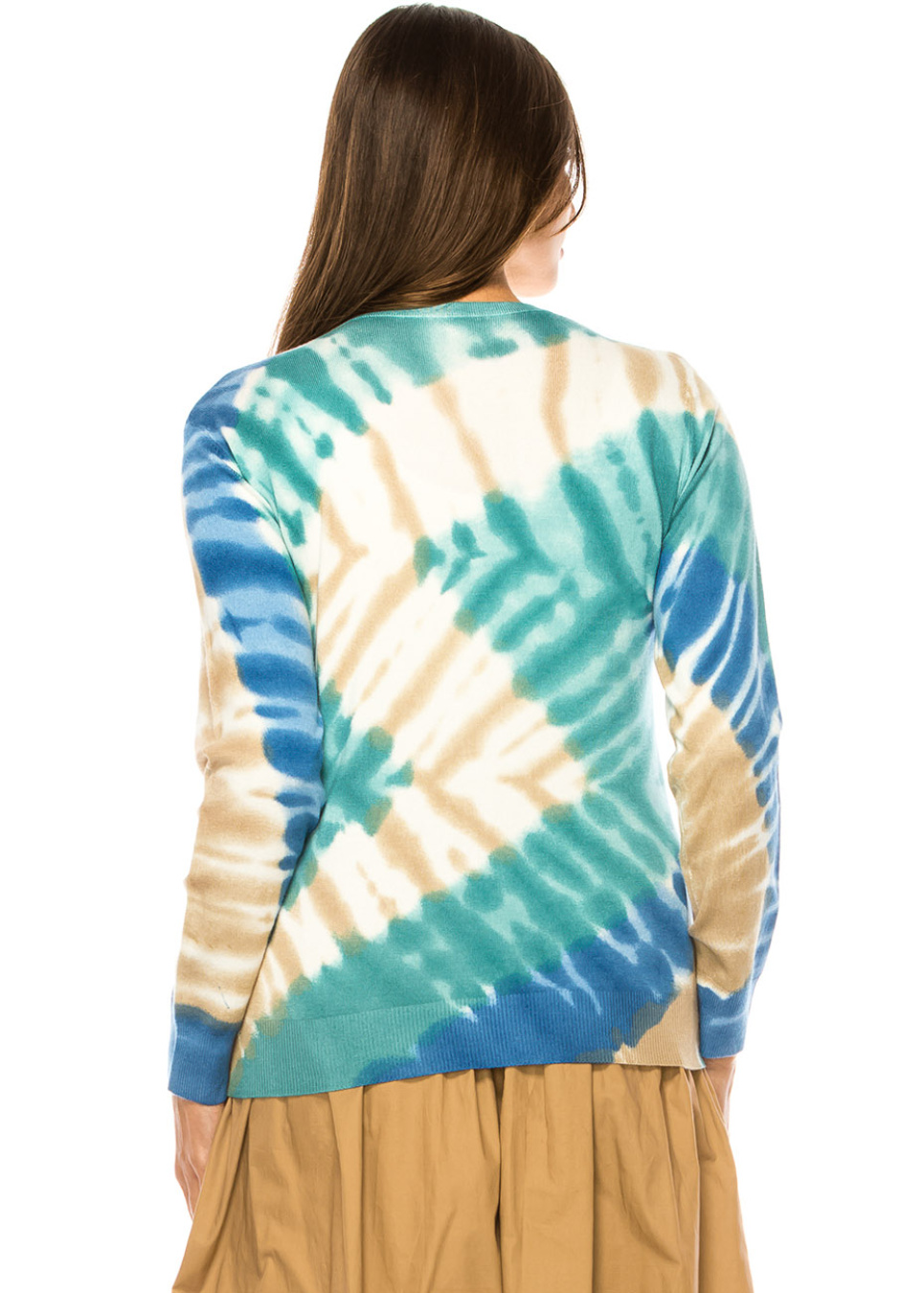 Blue and Olive Dip-Dye Cardigan with Buttons