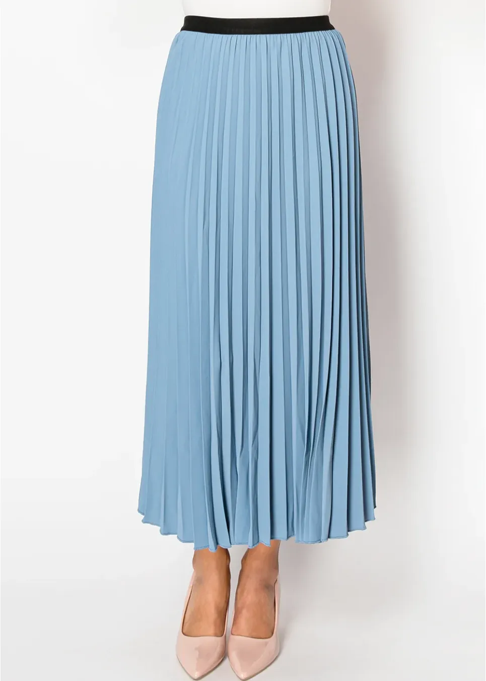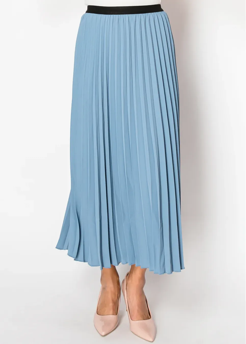 Calm and classic, this sky blue pleated skirt is a beautiful choice for a soft and understated look. The flowing pleats bring elegance to your every step, while the delicate blue color pairs wonderfully with light or neutral tones. A must-have for timeless, modest style.