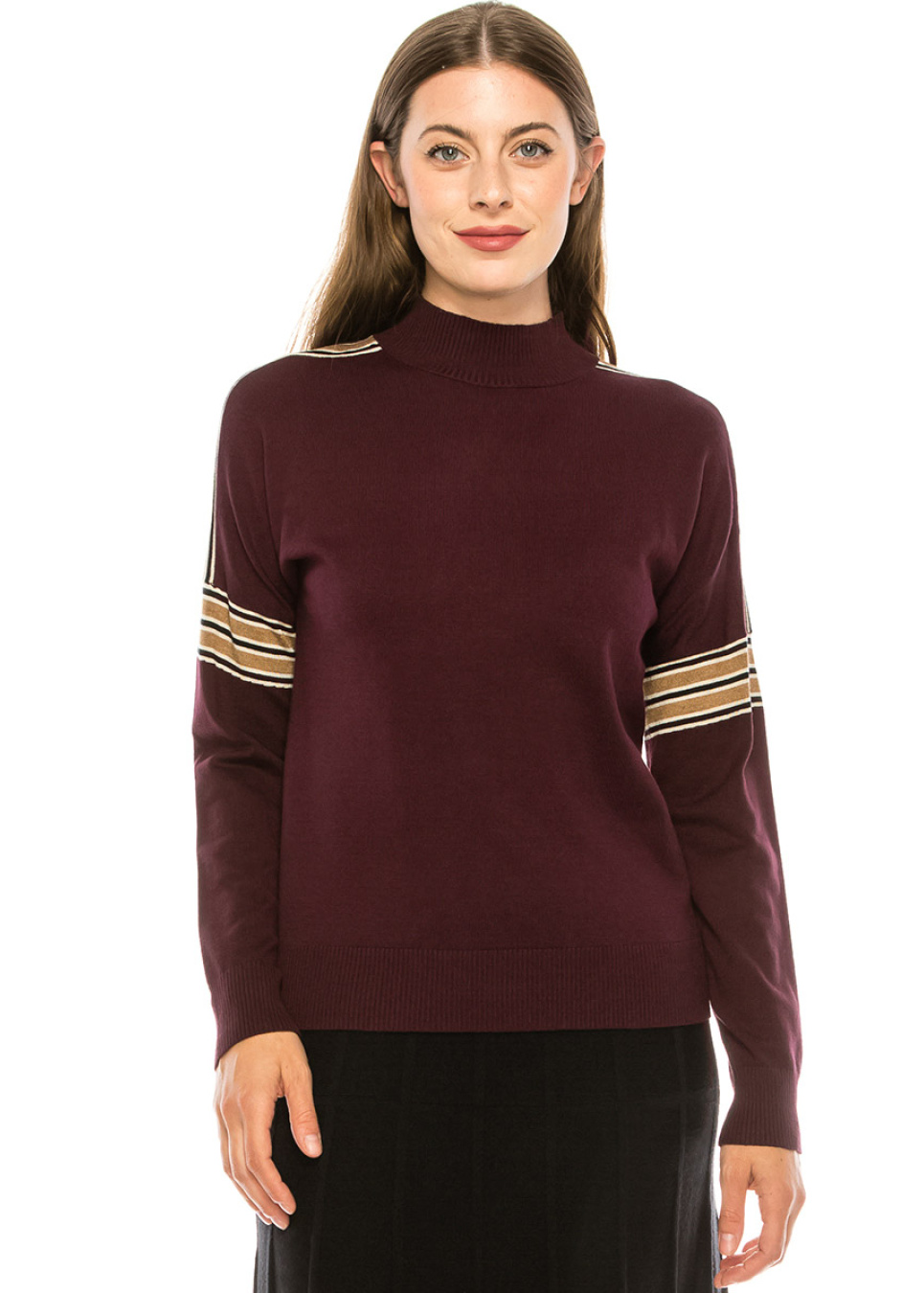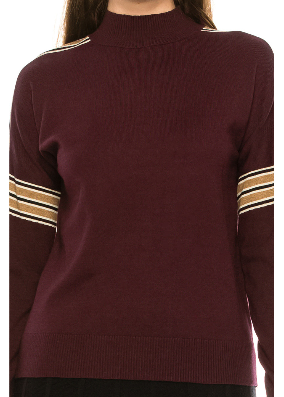 Shoulder Striped Top - Burgundy