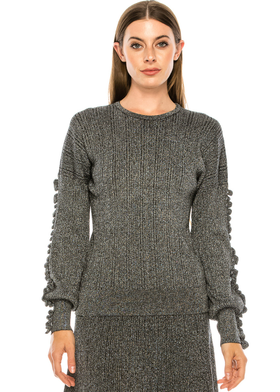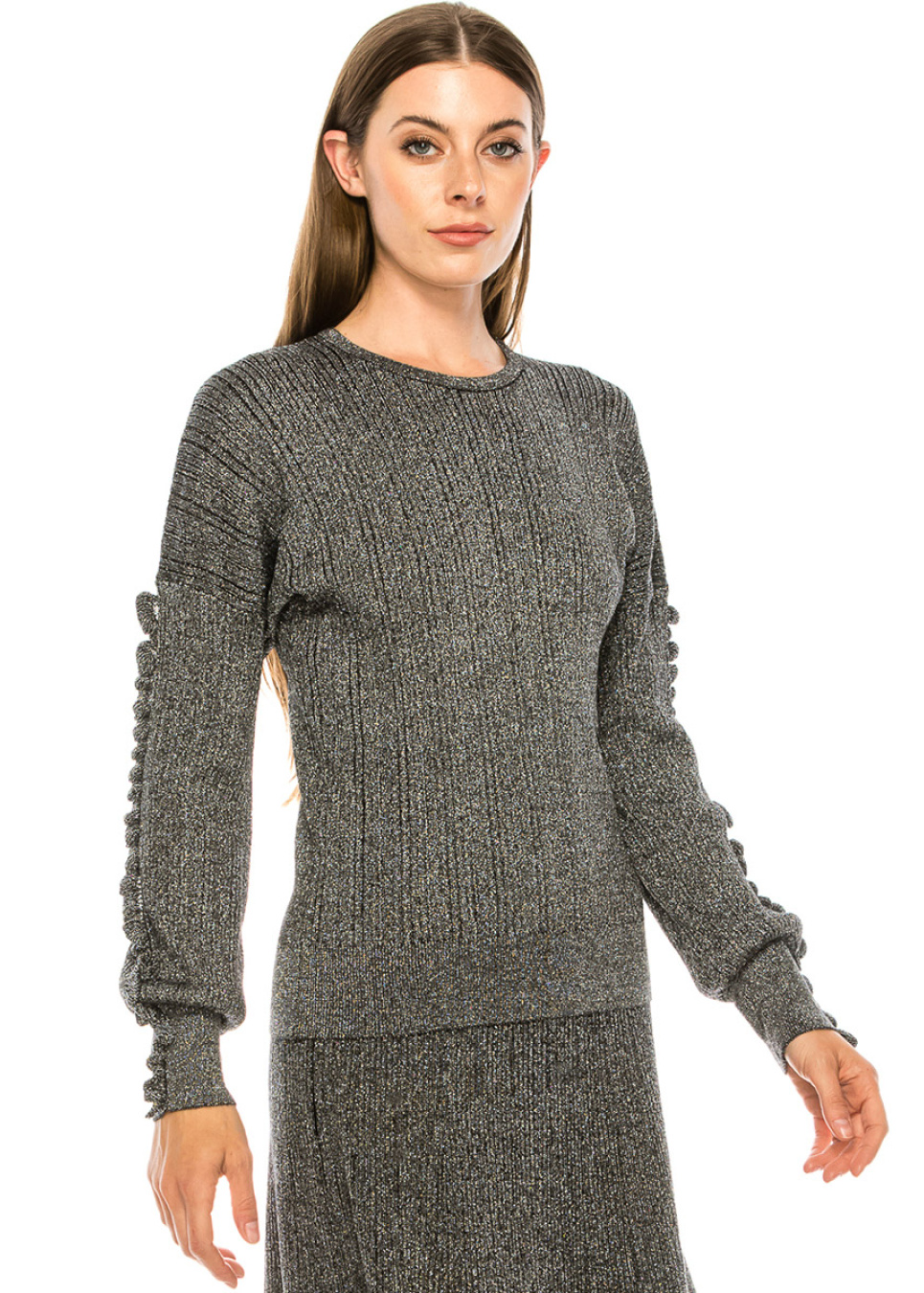 Silver lurex sweater with blouson sleeves