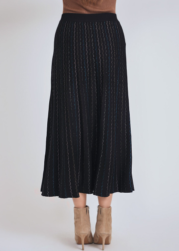 Black Ribbed Midi Skirt with Colorful Streaks