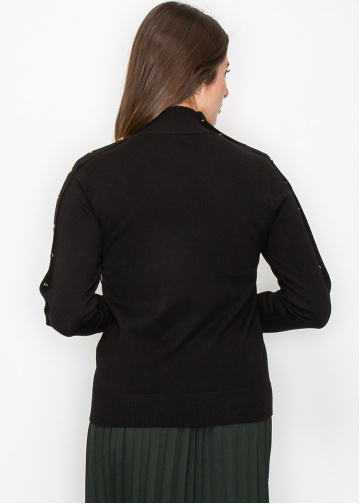 Black Buttoned Sleeve Mock Neck Top