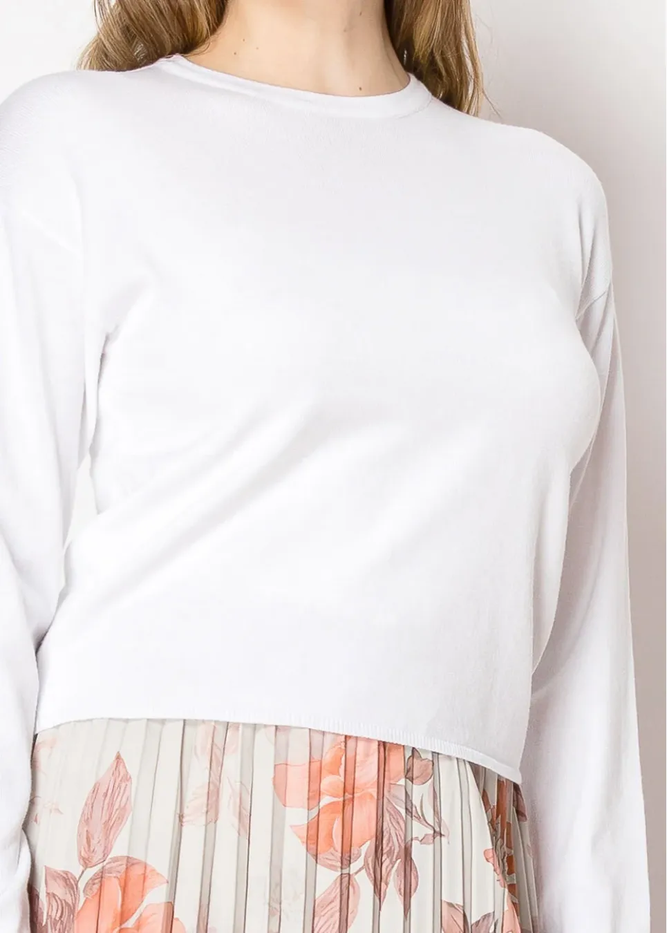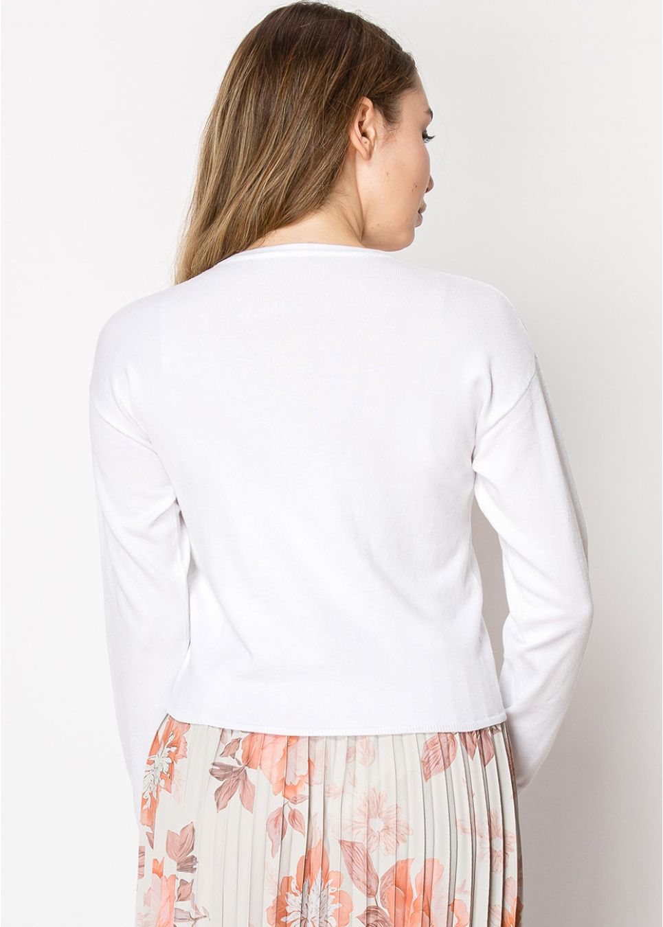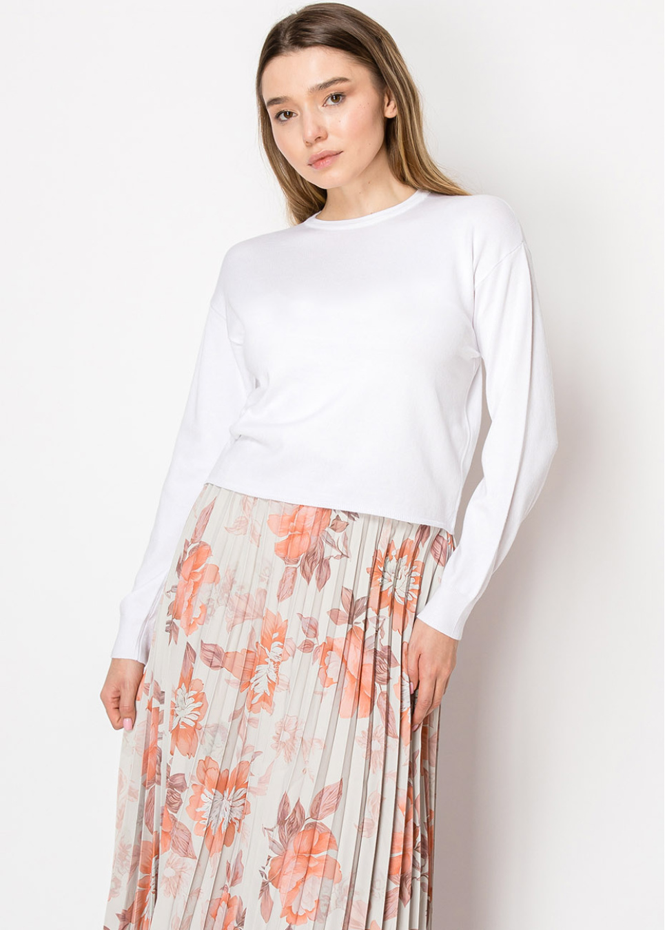 Soft, simple, and timeless, this white pullover is perfect for your everyday style. The clean design and comfortable fabric make it an easy match for your favorite floral skirts or tailored pants.