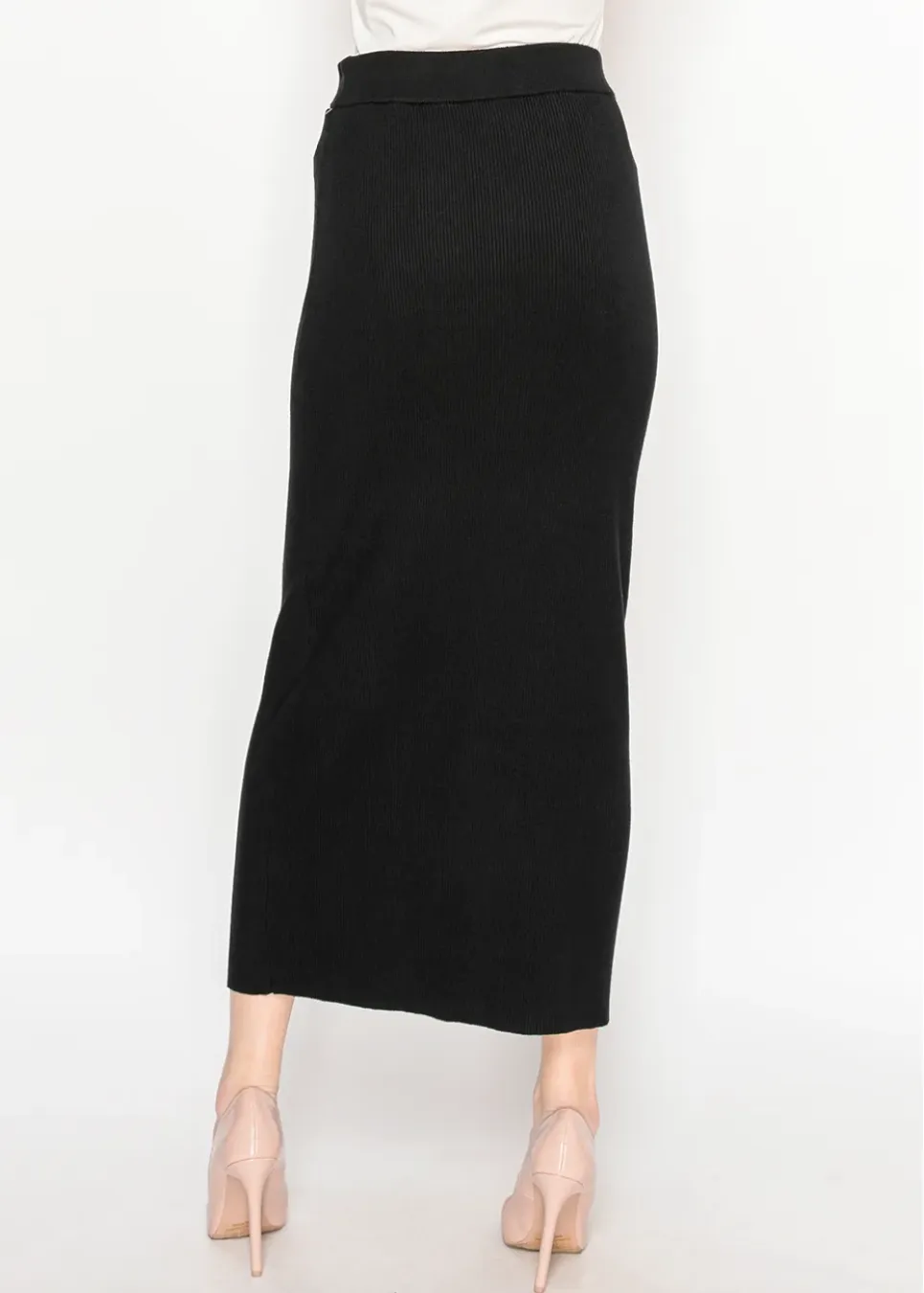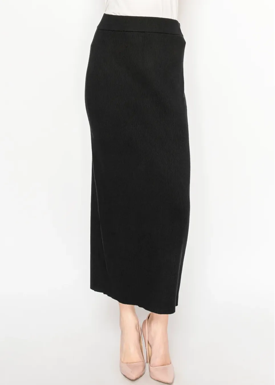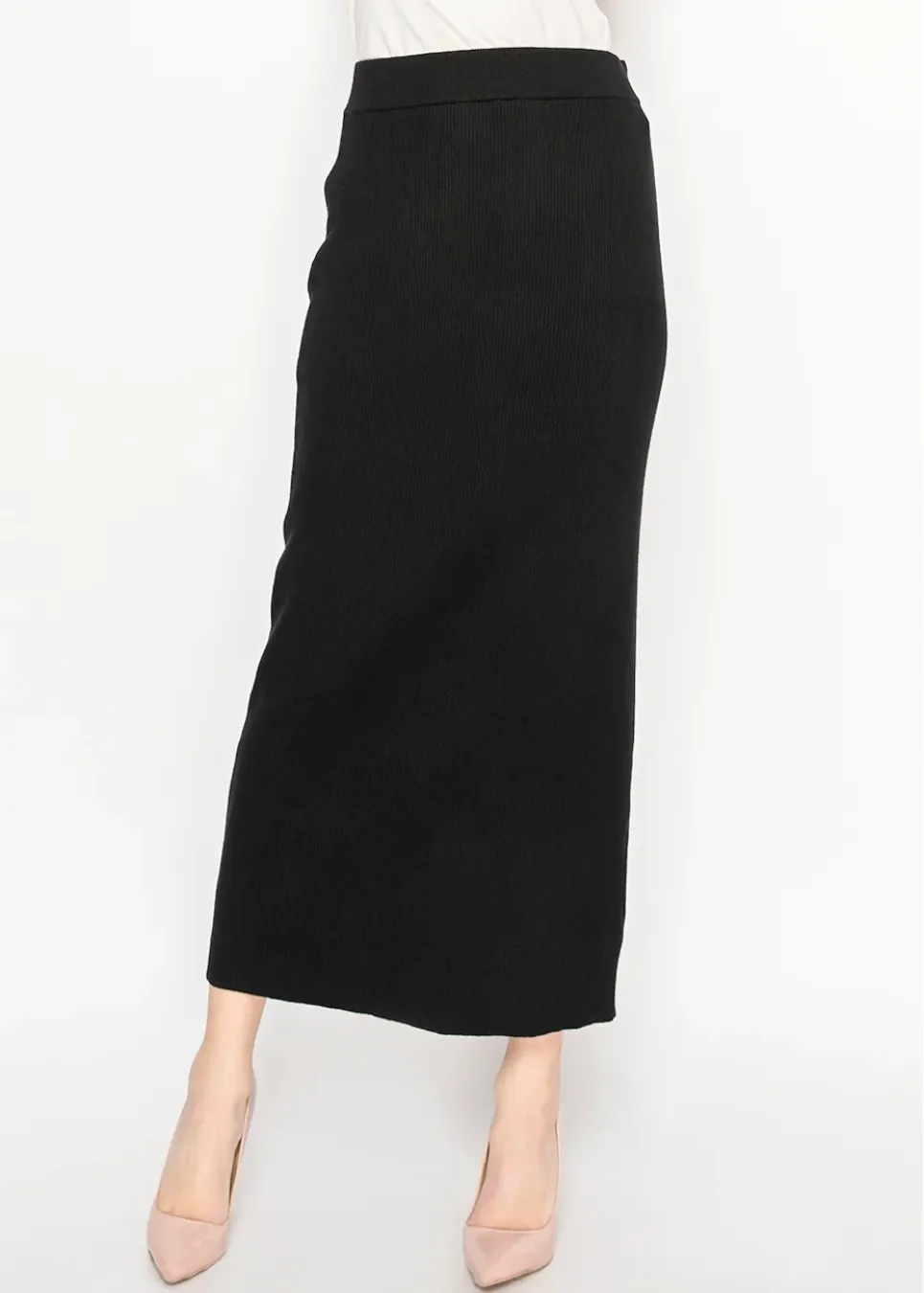 Your new go-to black skirt. Clean lines, subtle stretch, and an easy pull-on waist make this a no-fuss favorite for layering.