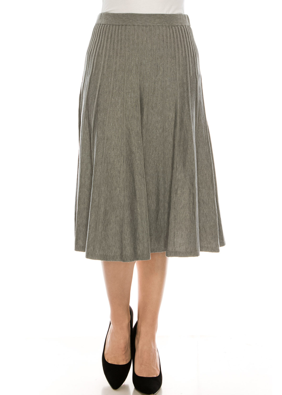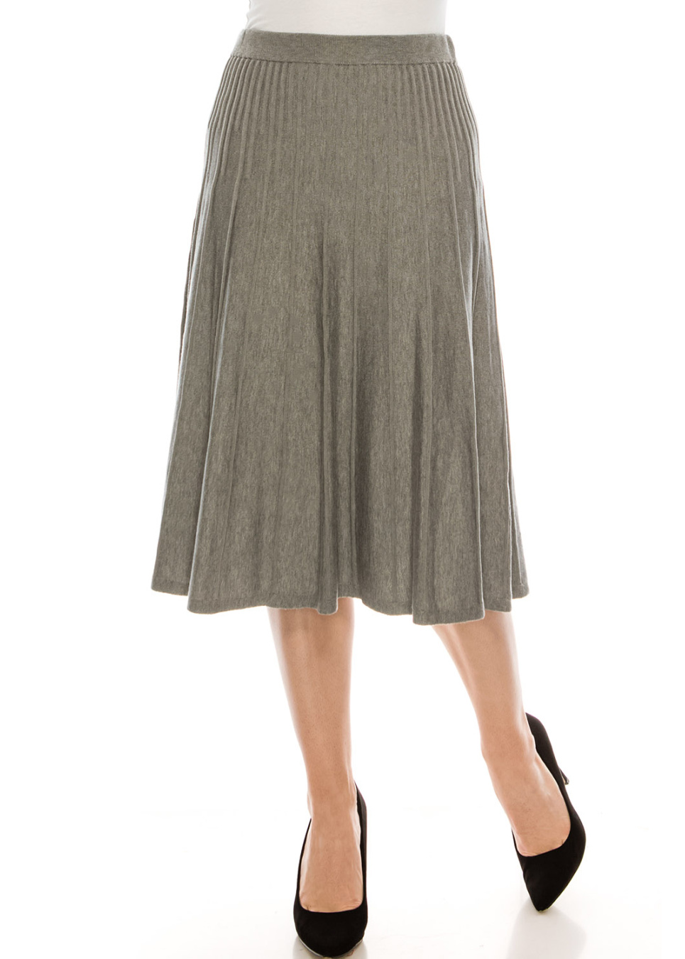 - This pleated skirt is so flattering. We designed this skirt in a way that it would lay flat on the stomach then starts pleating after.