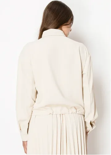 A classic button-up in a timeless beige hue, this blouse is all about simplicity and charm. The breathable fabric feels light and soft, while the adjustable drawstring hem gives it a unique yet functional edge. Perfect for layering or wearing solo, it’s a wardrobe must-have for understated elegance.
