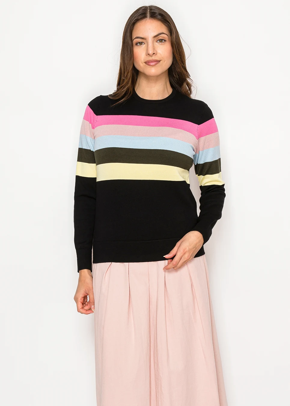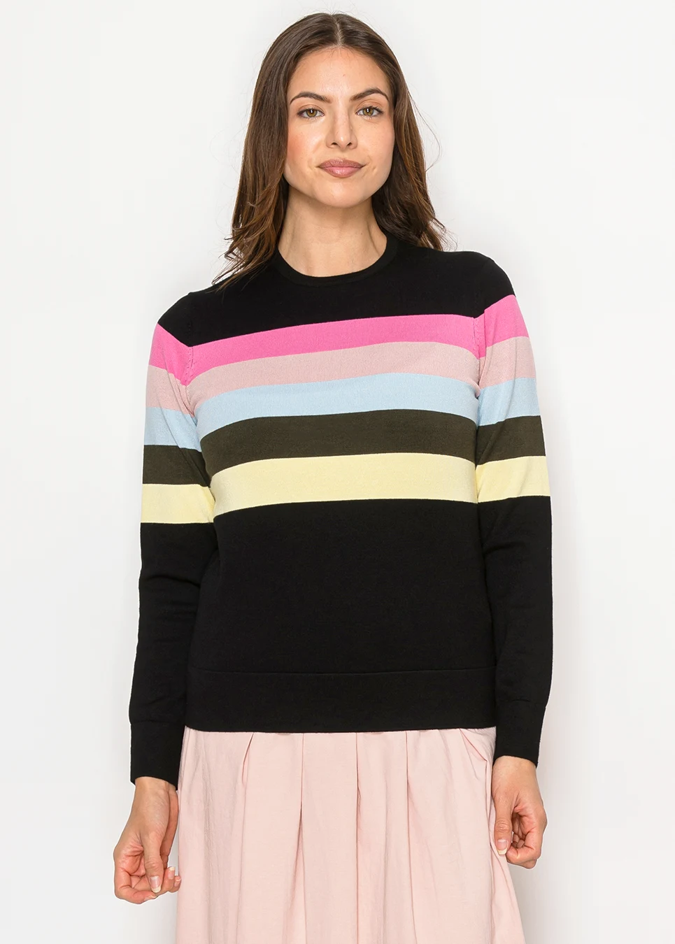 A classic pullover with full coverage and a neat silhouette. The stripe detail adds quiet character while remaining appropriate for everyday and dressier settings.
