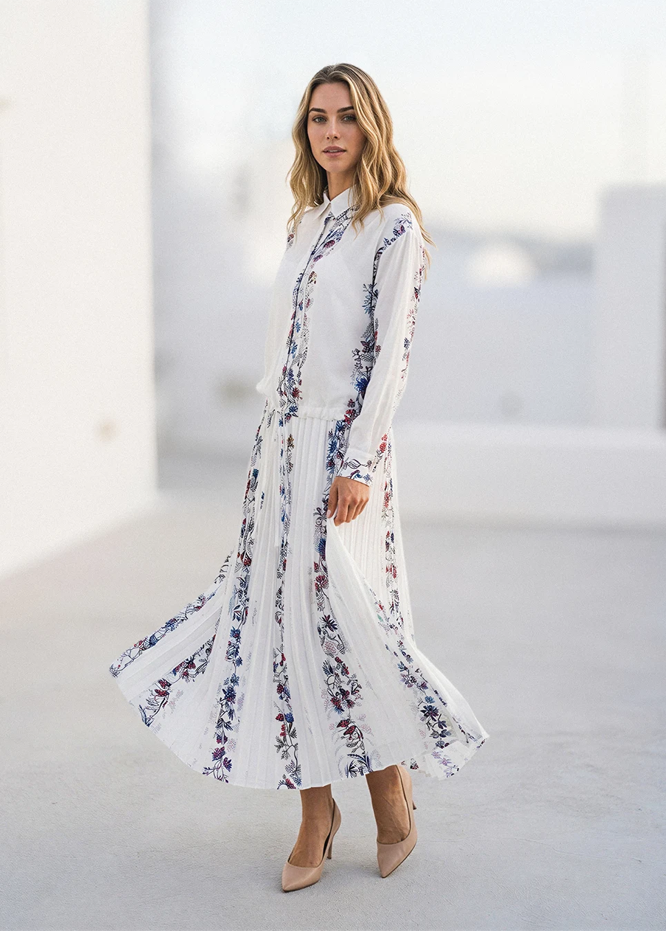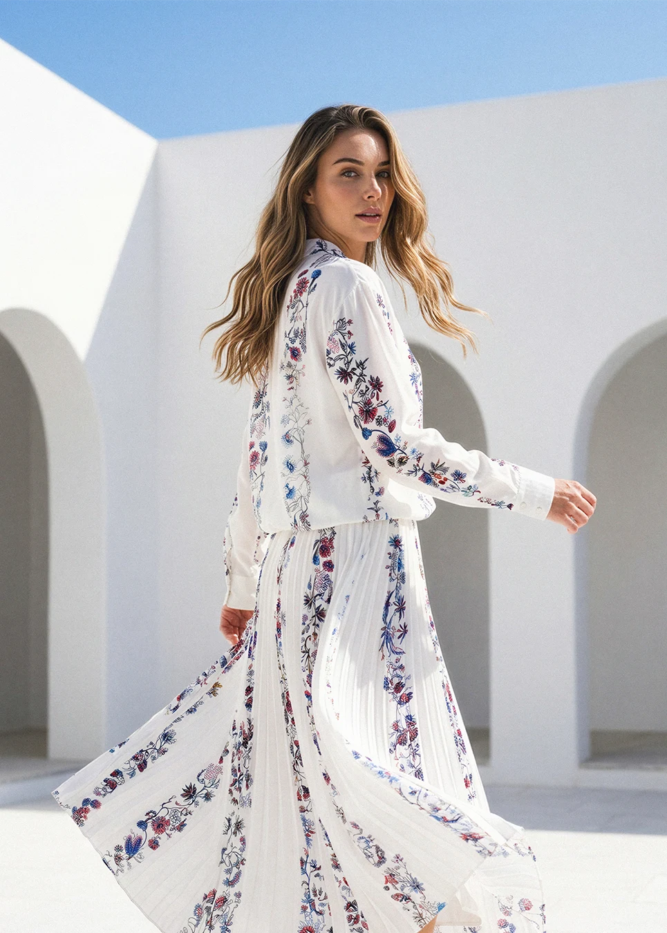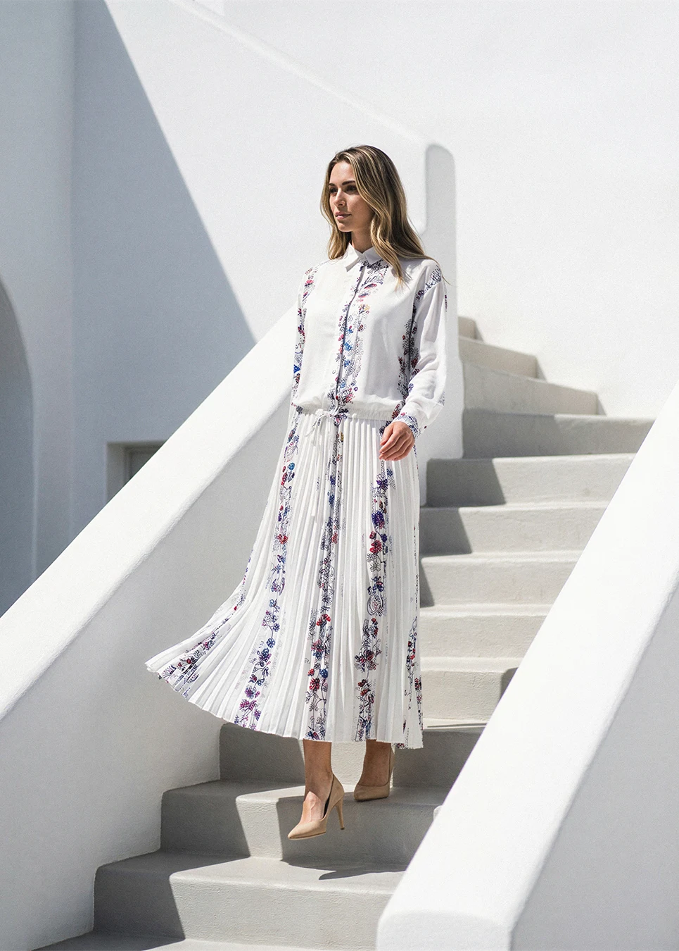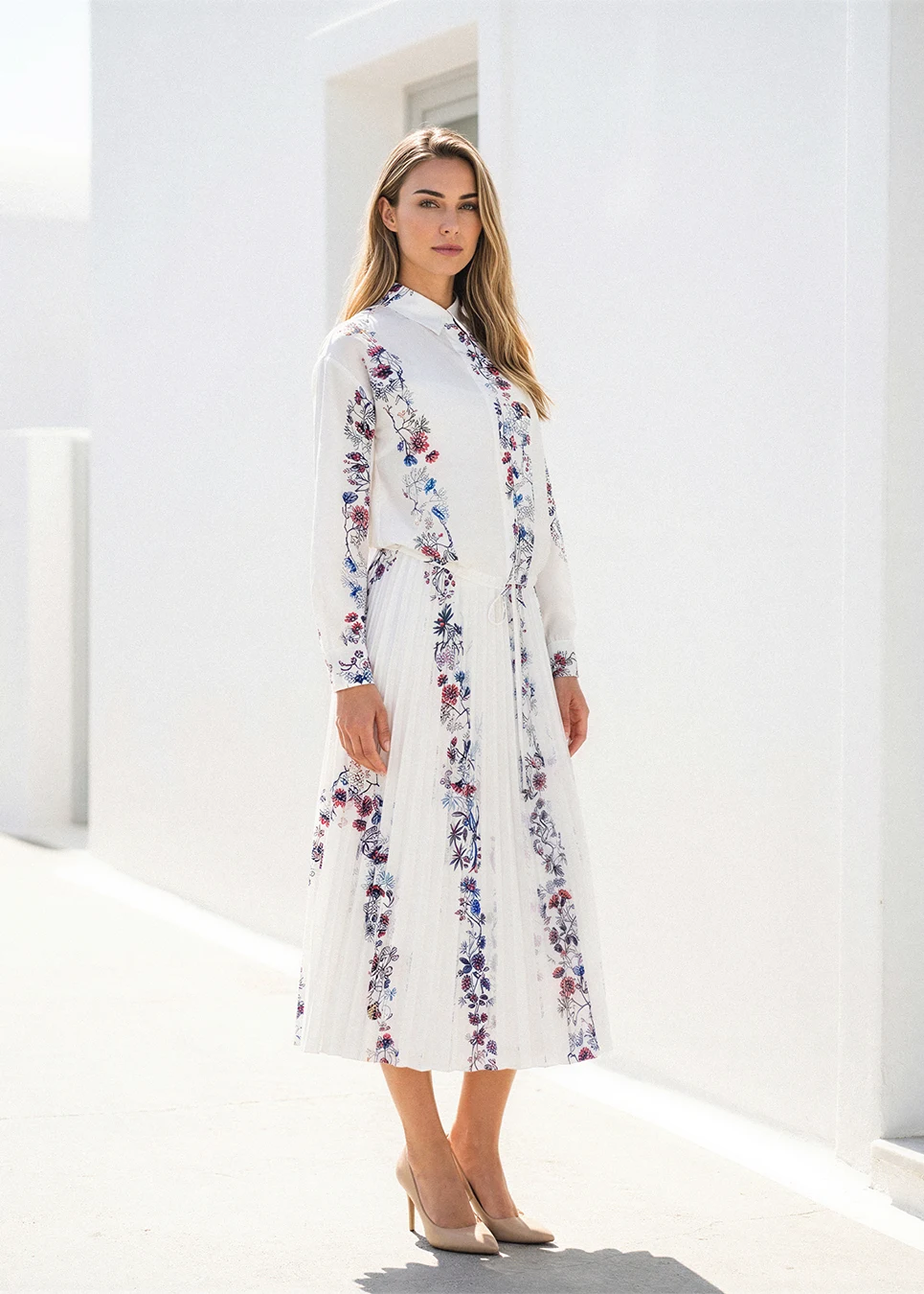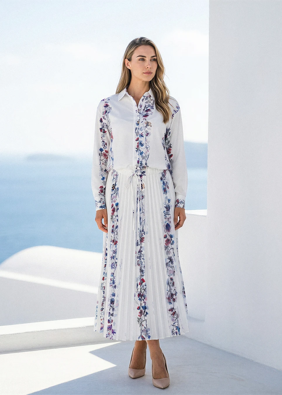 This set has a very wearable kind of elegance. Nothing is too bold, but everything works together — the vertical pattern, the flow, the length — it just feels balanced.
