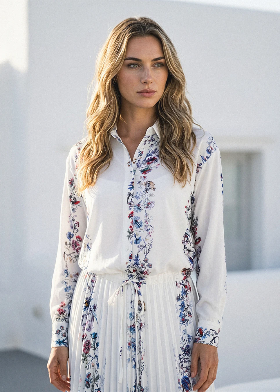 Soft Floral Stripe Blouse & Flow Skirt Set