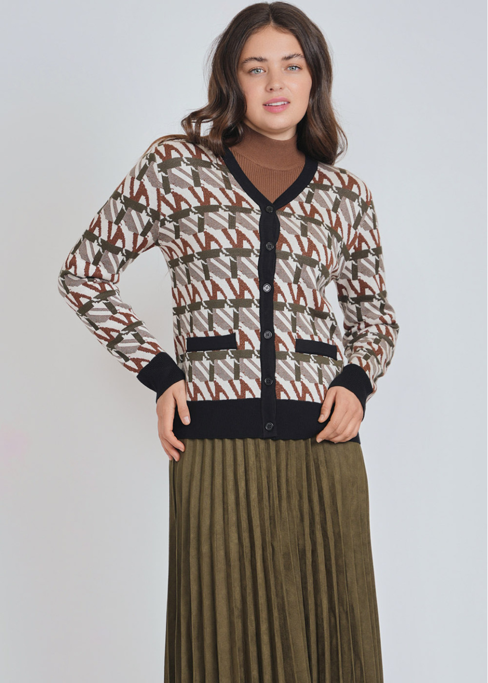 Blue and Olive Dip-Dye Cardigan with Buttons