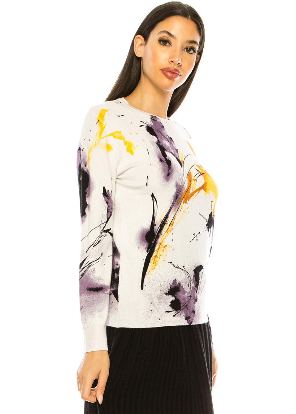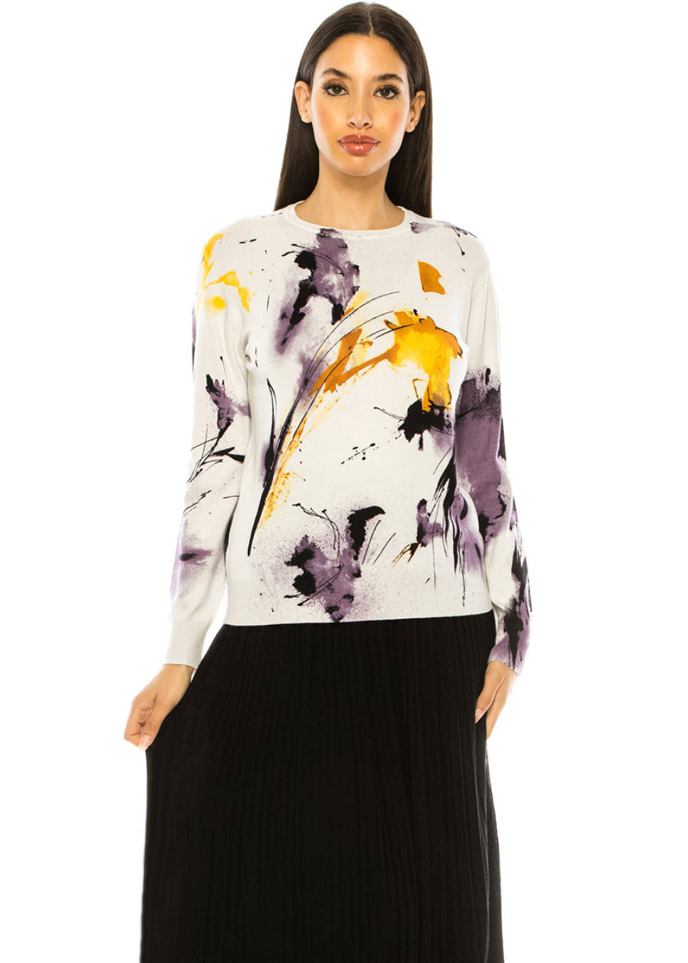 This stylish and comfortable white sweater is a versatile addition to any frum woman's wardrobe. Its eye-catching and colorful tie-dye print makes it a unique and playful piece that will make you stand out from the crowd. The loose fit and high-quality fabric ensure comfort all day long.