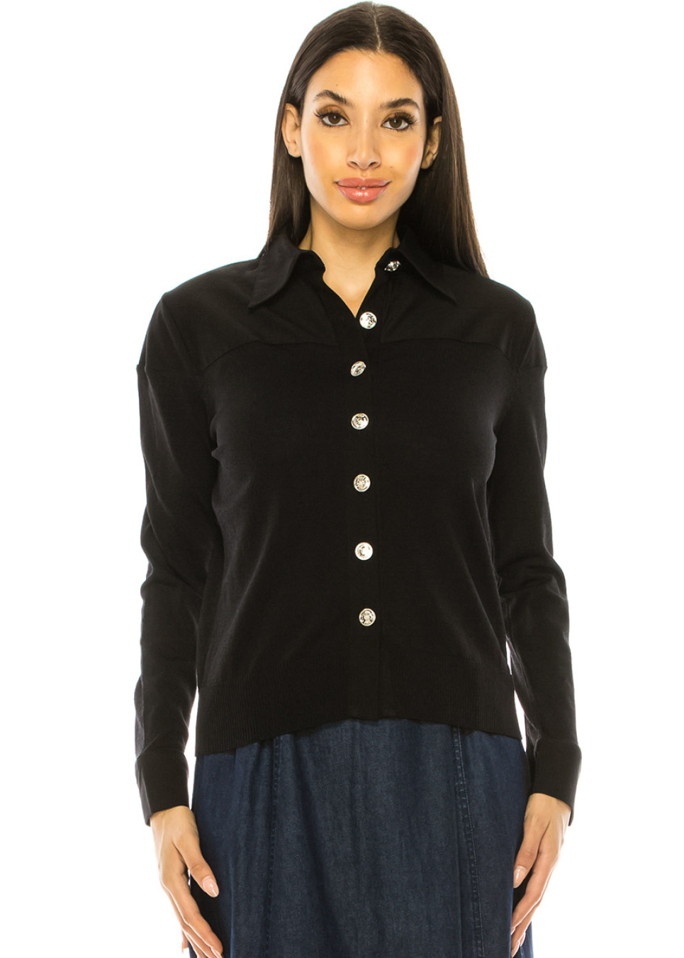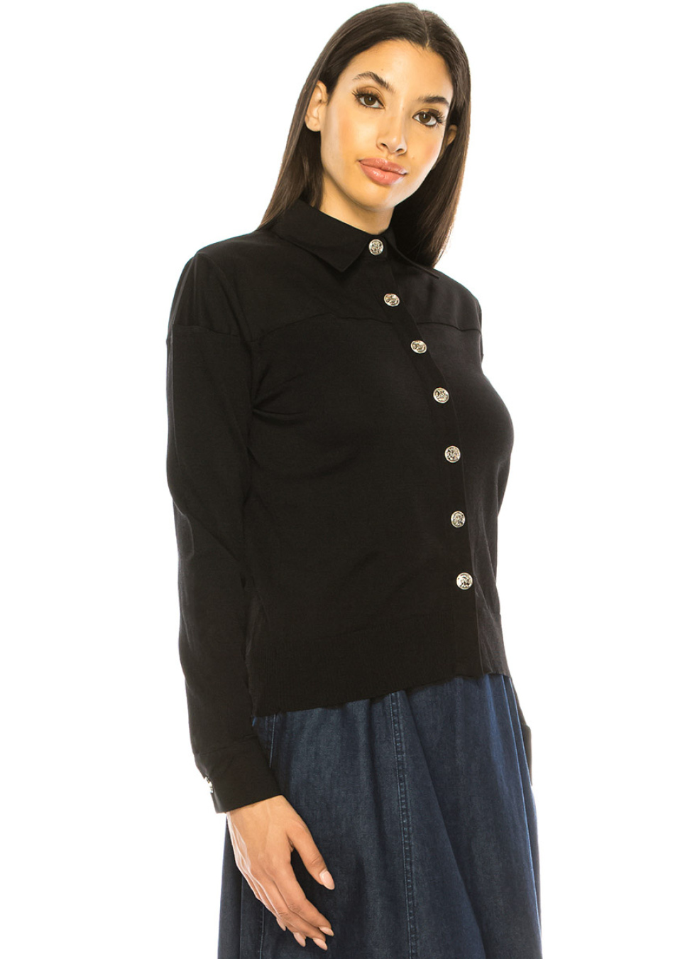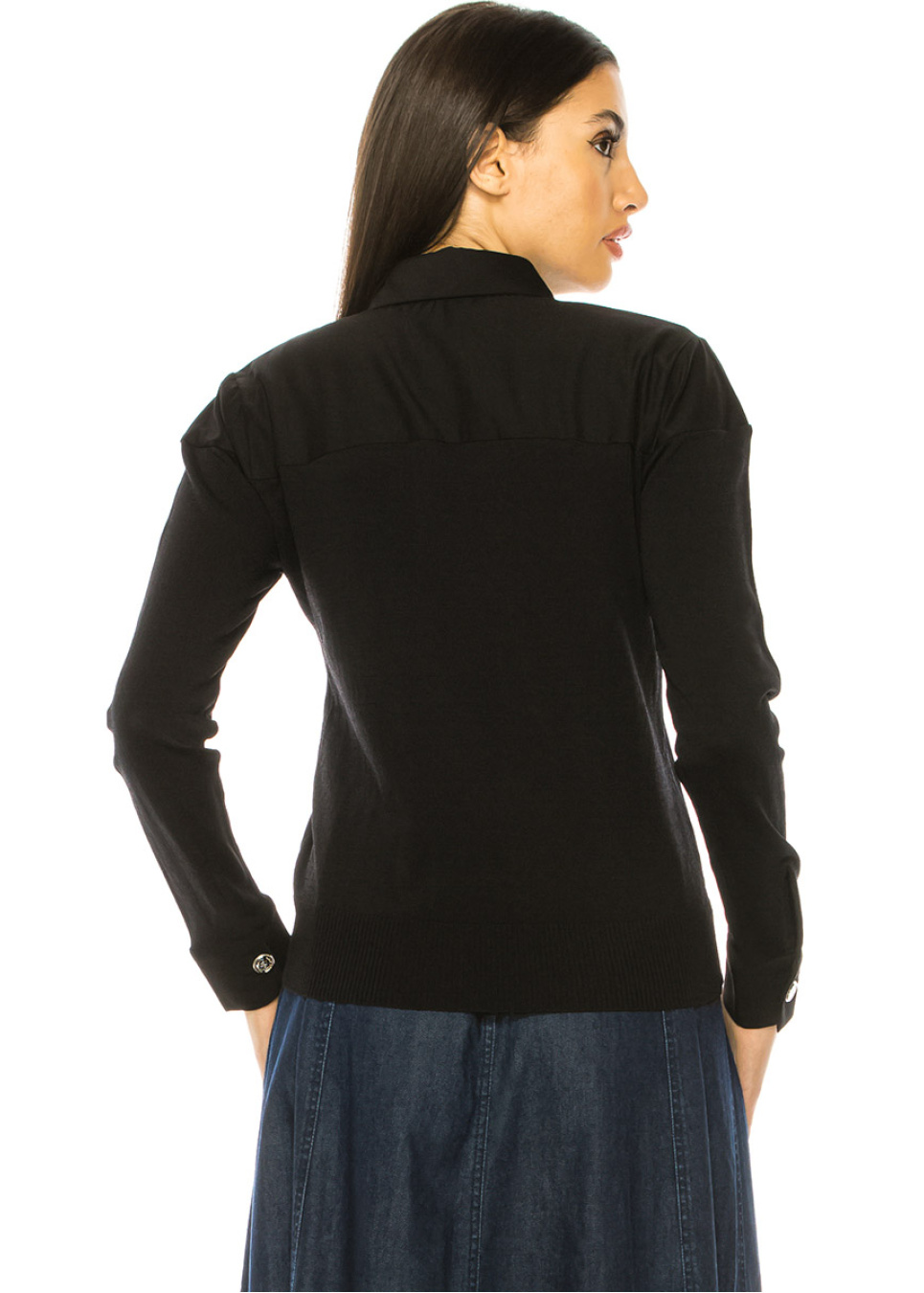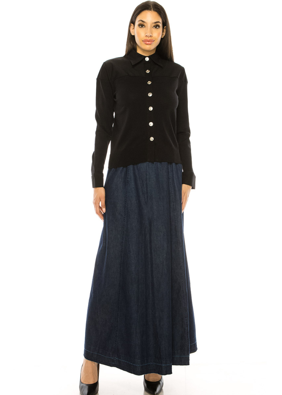For the ultimate in modest elegance, look no further than this stunning black cardigan. Its button closure and classic shirt collar make it the perfect layering piece for any outfit, while the premium quality fabric promises all-day comfort and softness.