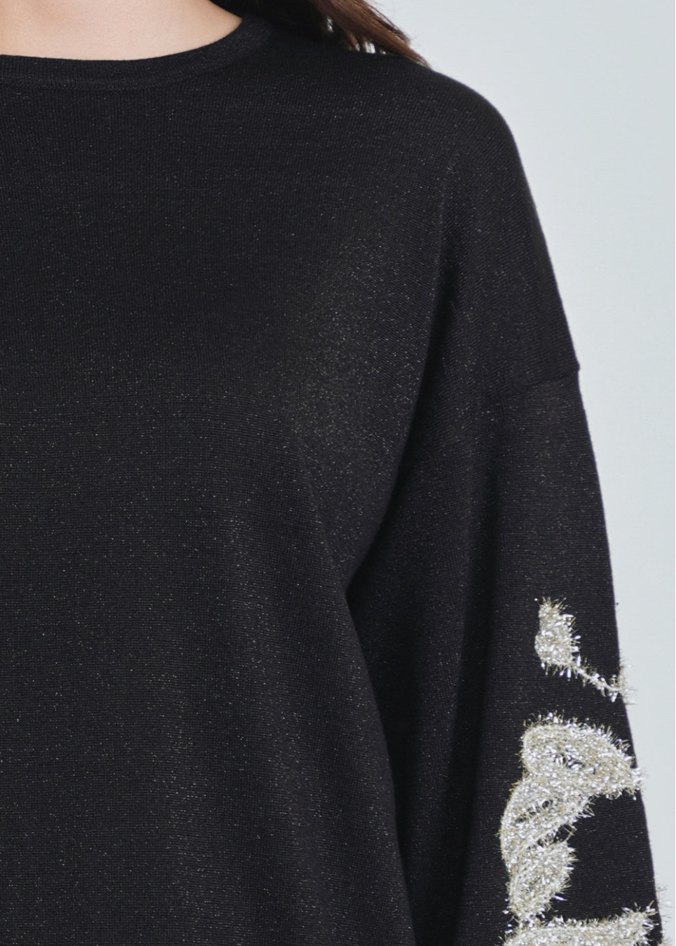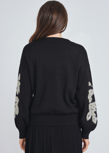 Sparkling Accents on Dramatic Sleeves Black Sweater