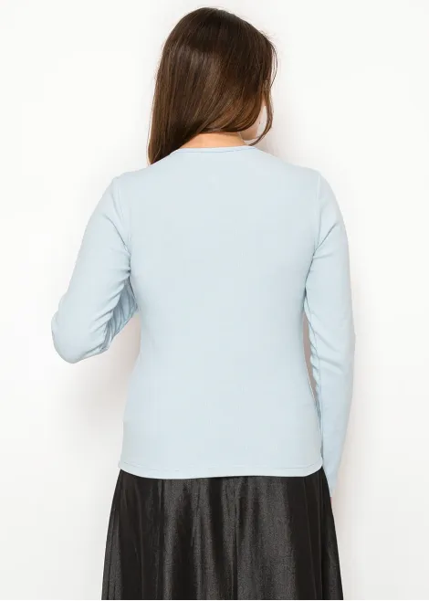 Long Sleeve Henley Tee in Light Blue Rib