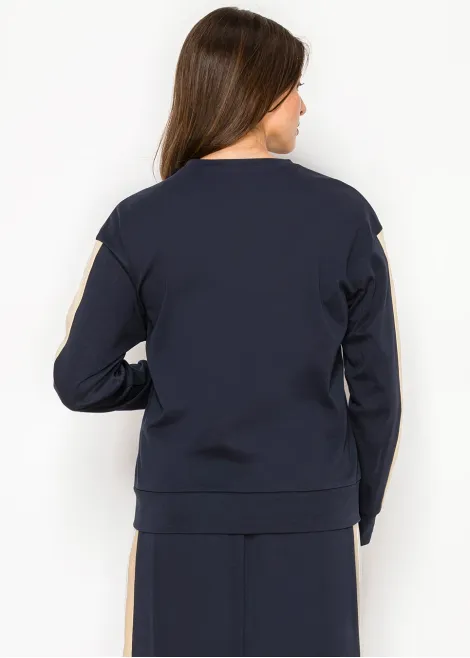 Navy Crew Neck Top with Side Stripe Detail