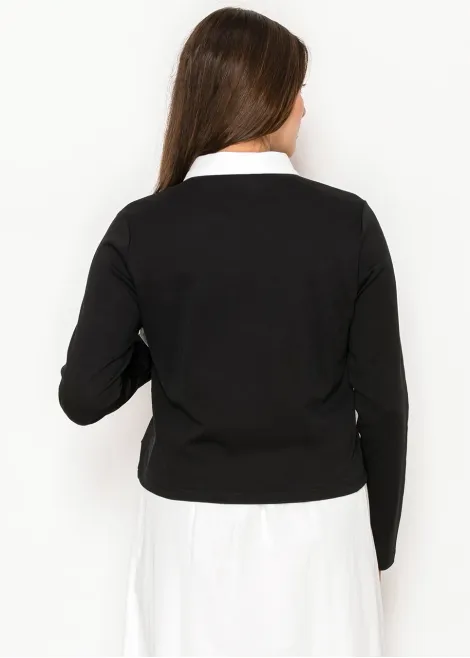 Black Contrast Collar Long Sleeve Cotton Tee