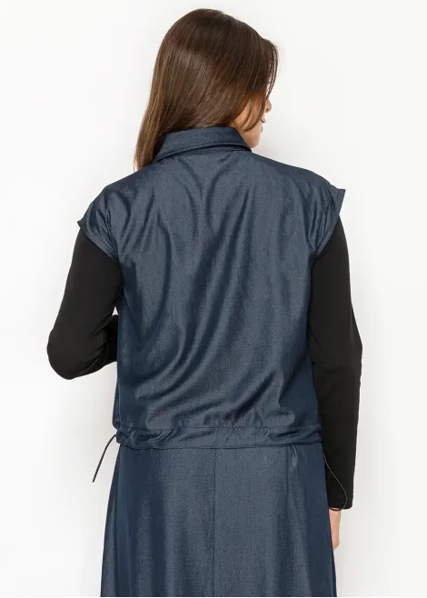Navy Sleeveless Shirt with Drawstring Waist