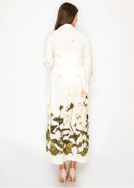 Ivory Long Sleeve Floral Shirt Dress