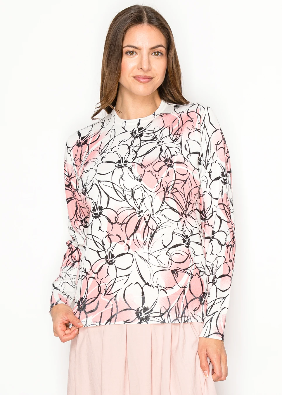 Spring Blush & Black Floral Knit Pullover