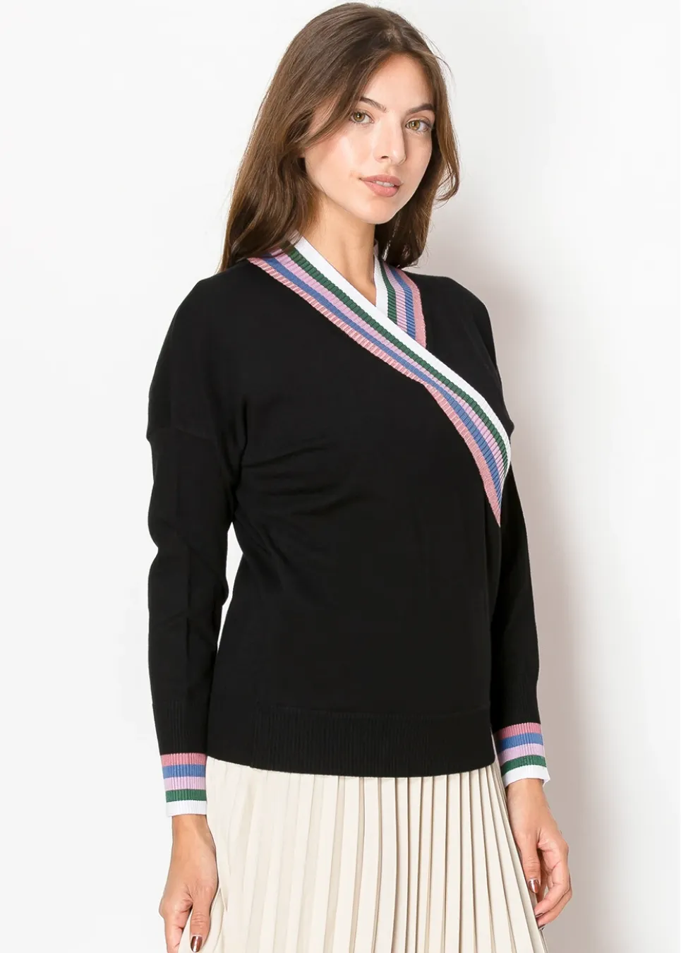 Multi-Stripe Crossover Knit Sweater