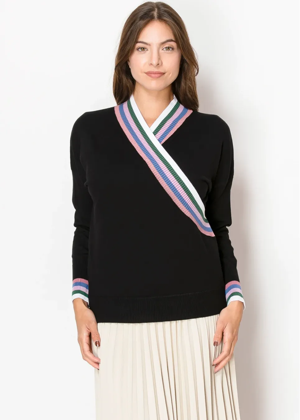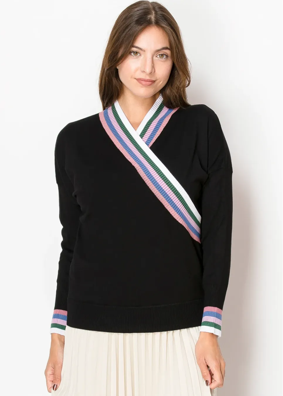 Striped Edge Wrap Knit Sweater