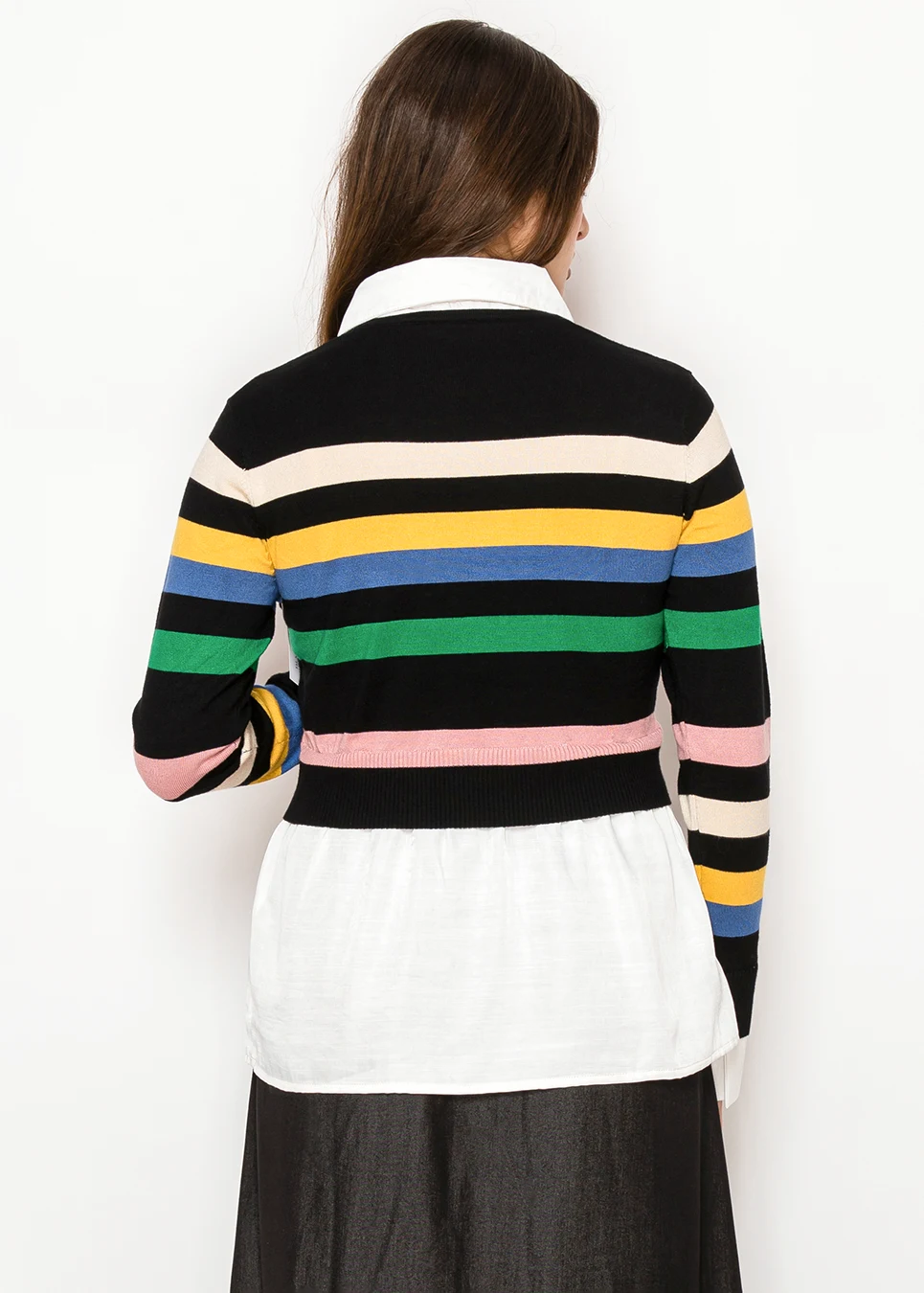 Vibrant stripes bring personality, while the extended shirt layer keeps it grounded and polished. It’s the kind of piece that looks styled even when you didn’t overthink it.