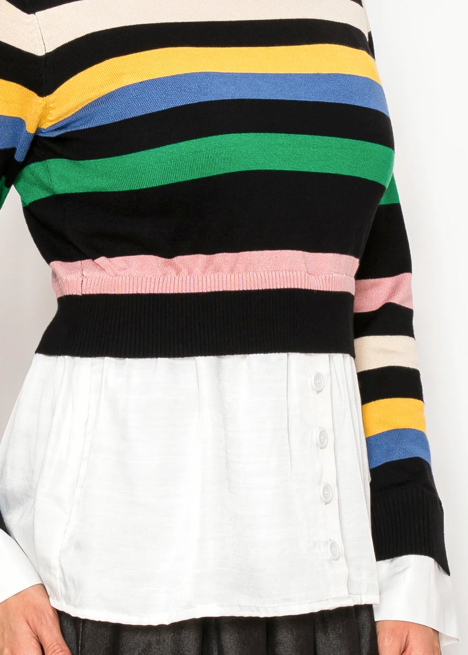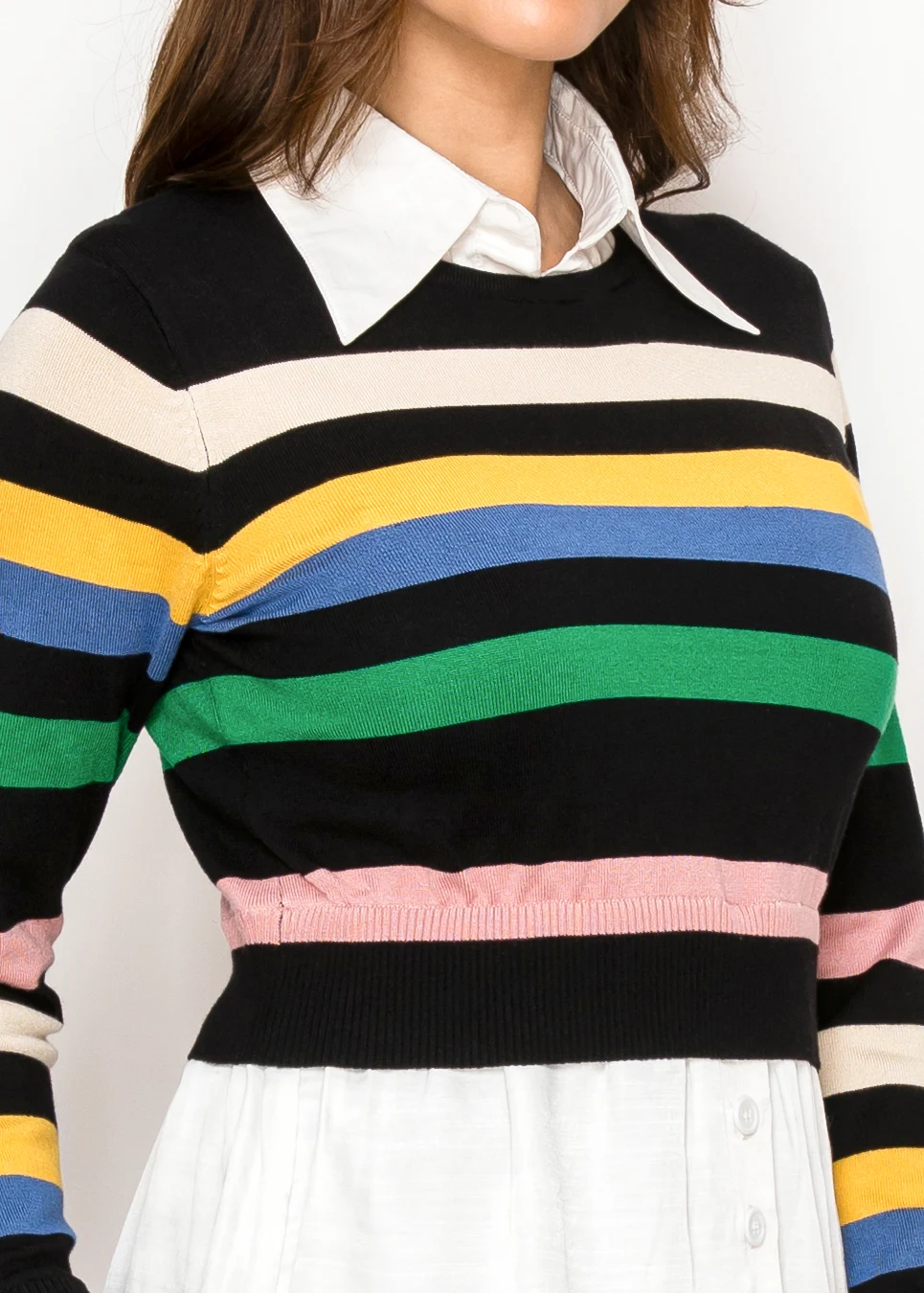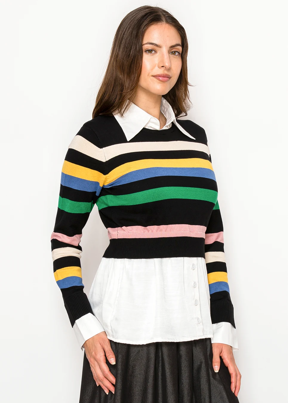 Striped Knit Top with Attached Shirt Detail