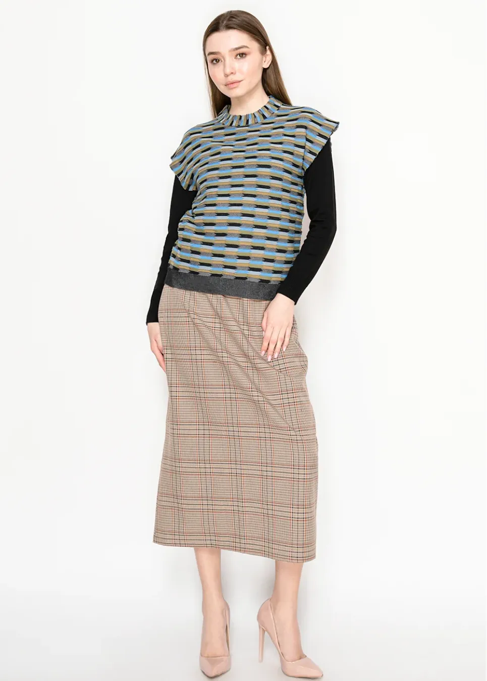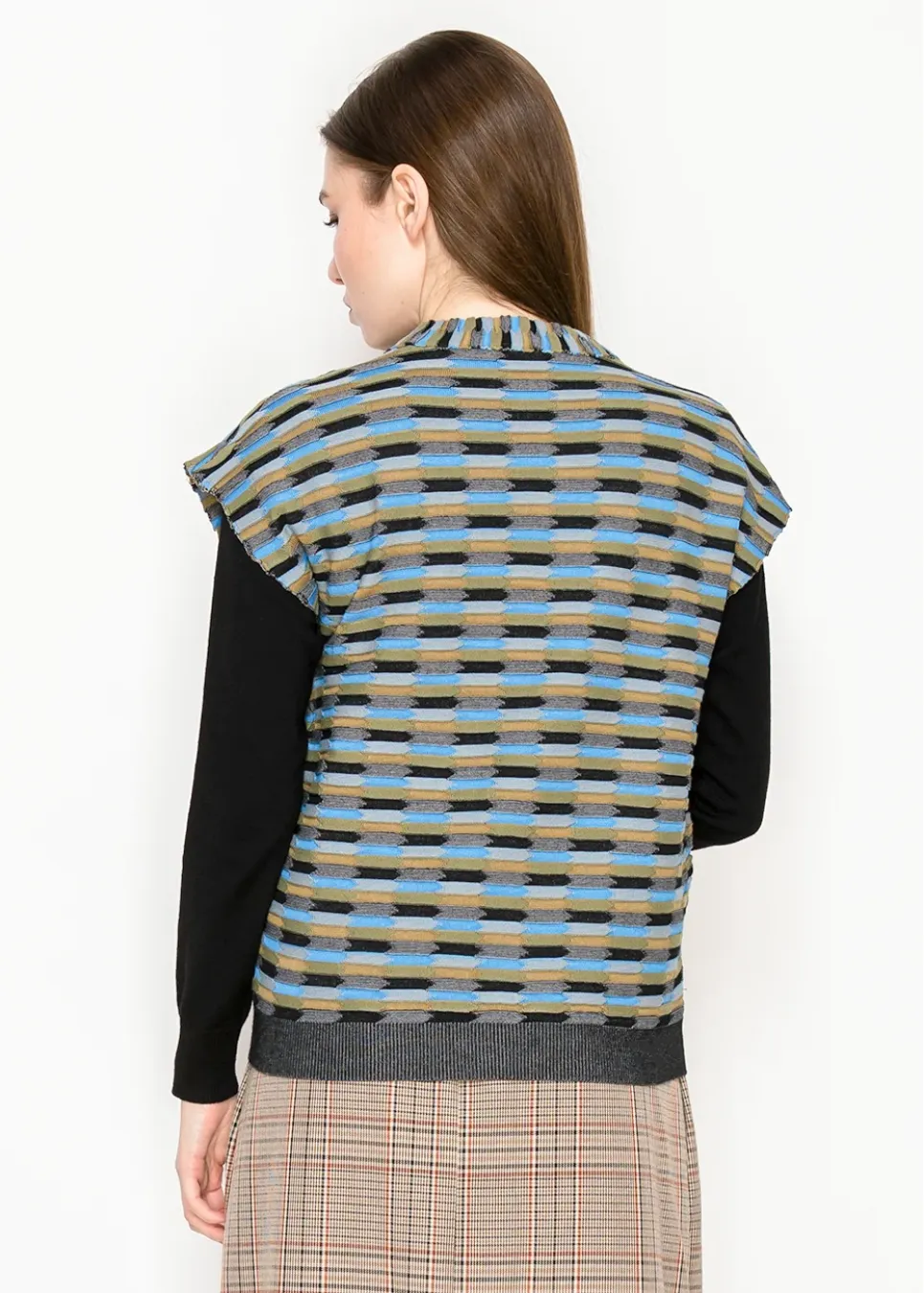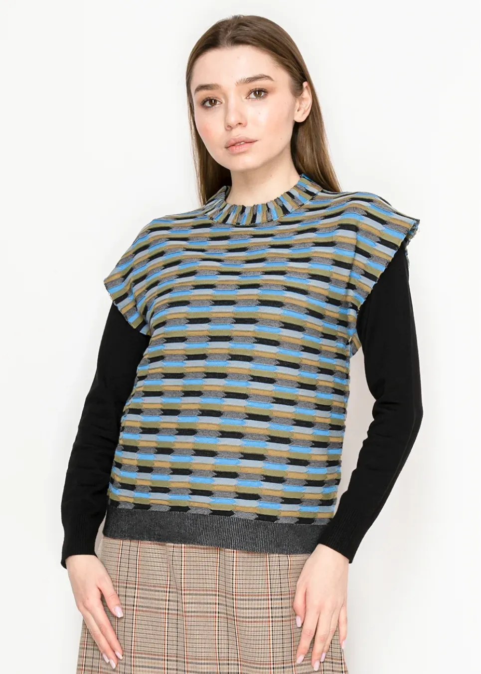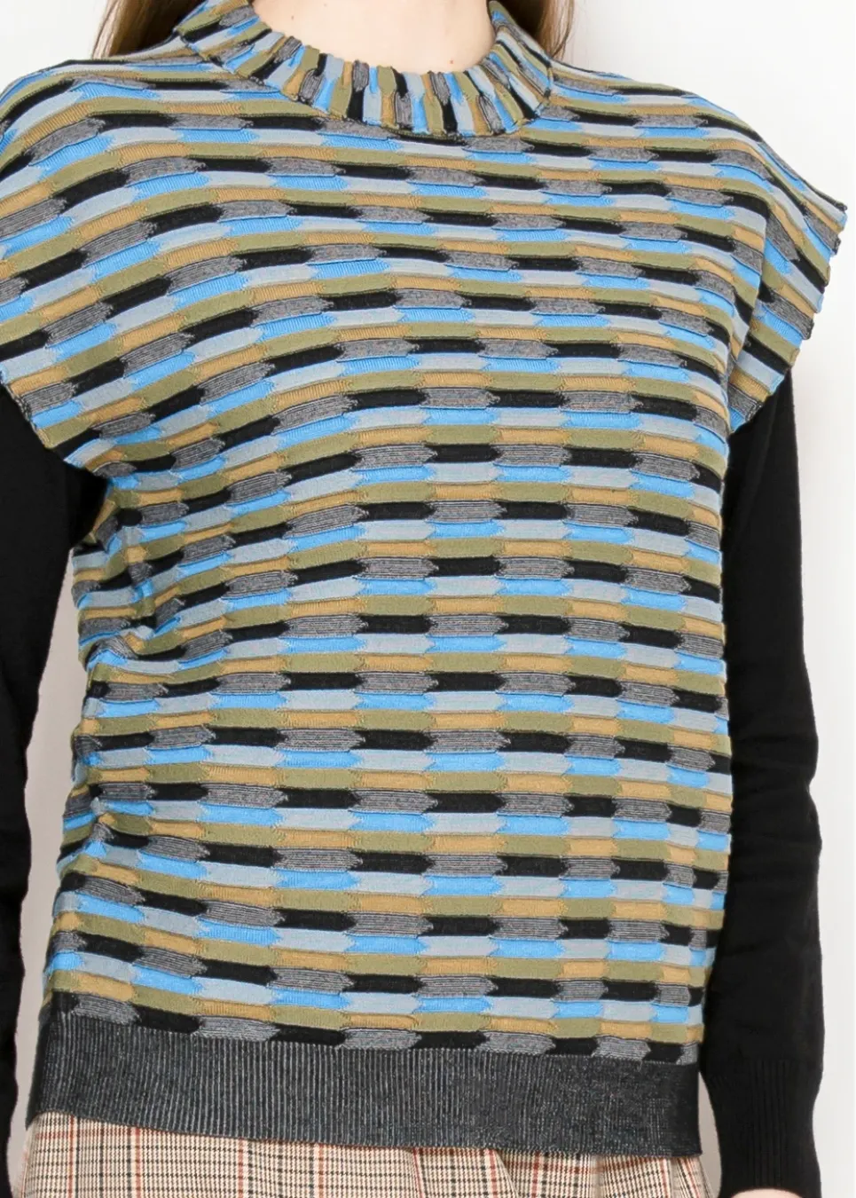 A striped vest with a modern edge. Clean lines, rich texture, and easy-to-wear colors make it a standout on its own or layered.