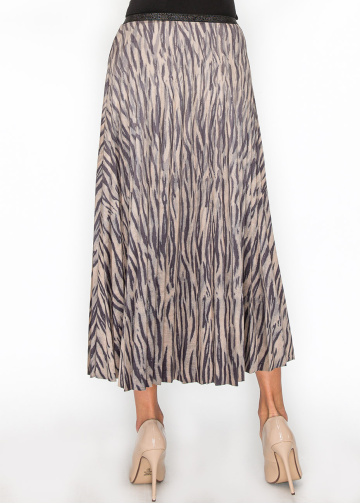 Take a walk on the wild side with the Striped Safari Pleated Skirt. The soft zebra stripes in neutral tones make this skirt a fun yet sophisticated choice for any occasion. The pleated design adds volume and movement, making every step you take feel stylish and confident.