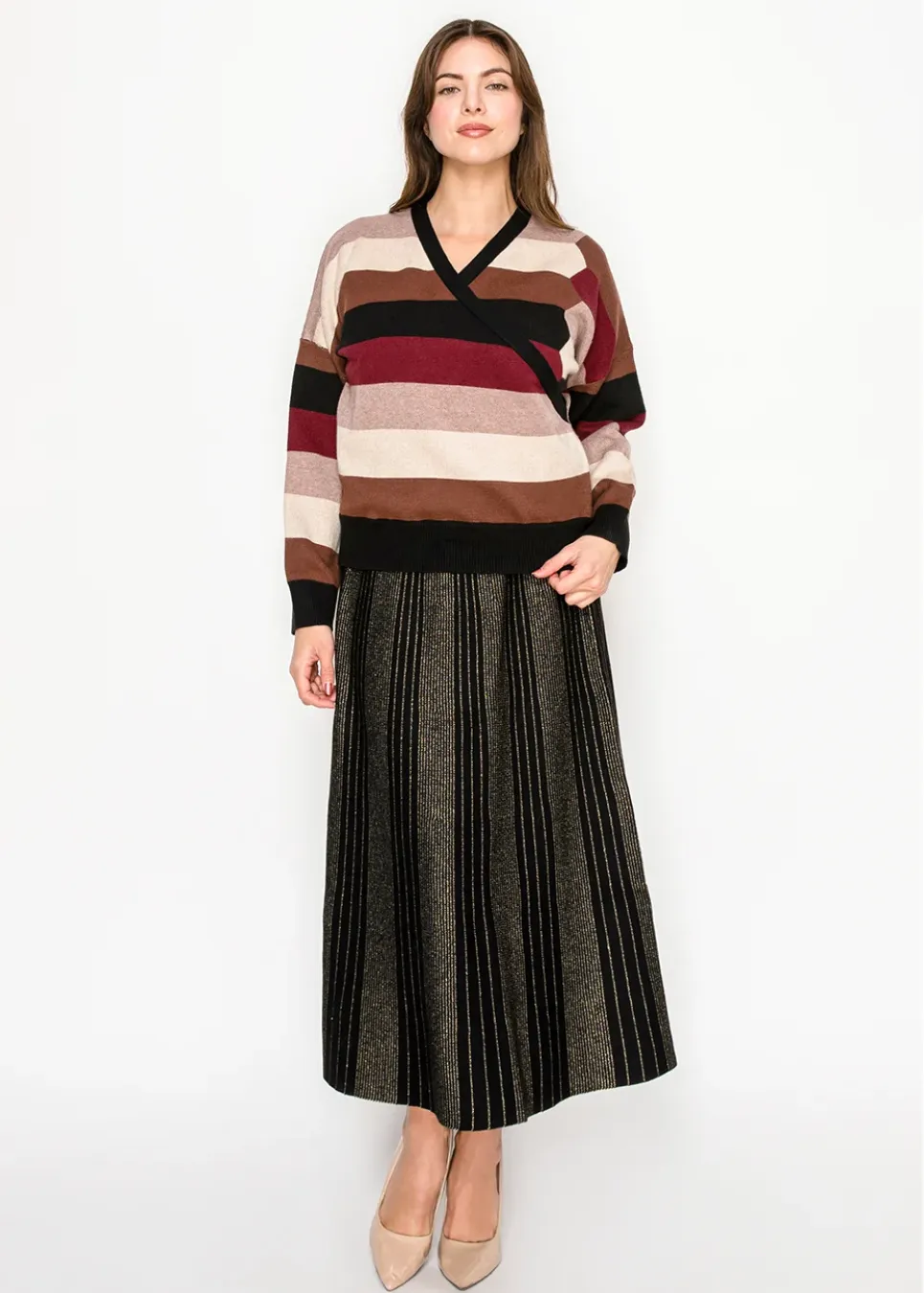 Modest Stripe Accent Knit – Burgundy Tone