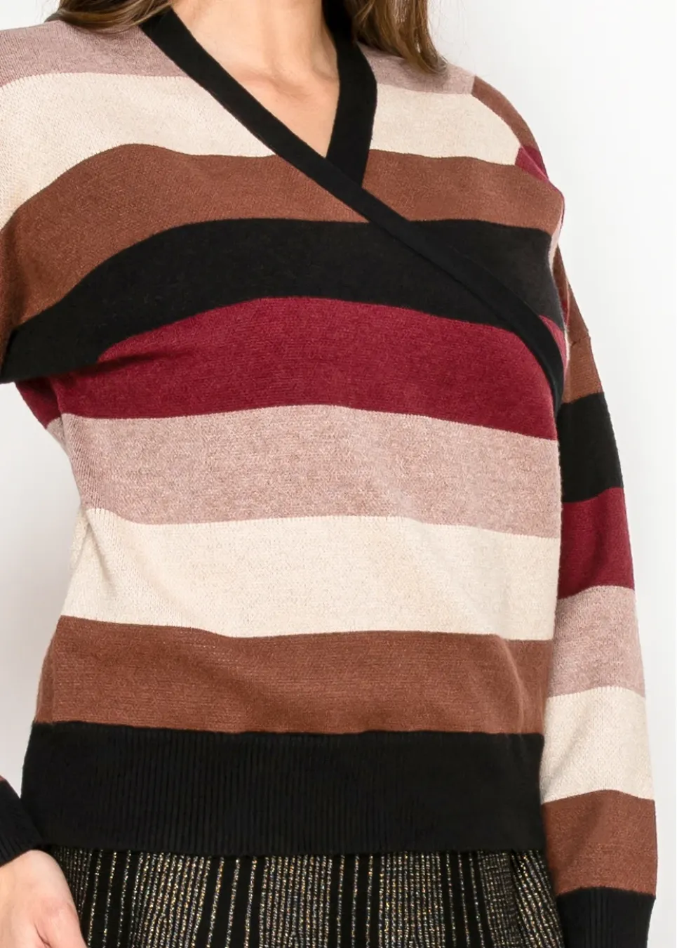 Striped Wrap Knit Sweater in Burgundy Mix