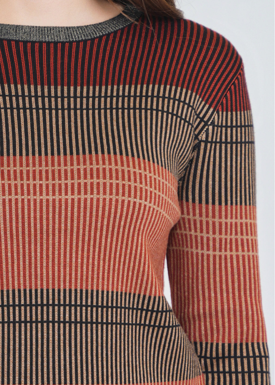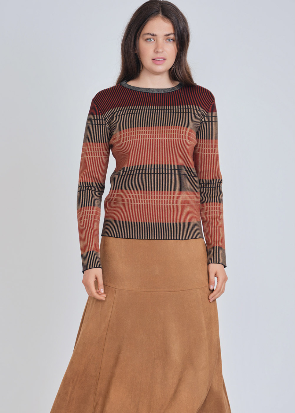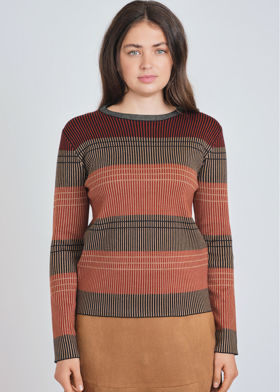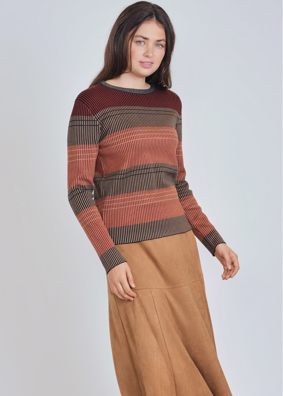 Stripes in Harmony: Rust-Colored Sweater
